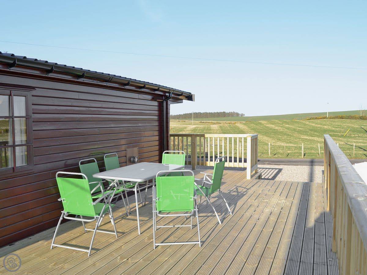 Tarrel Lodge is single-storey, wooden, detached holiday lodge situated in open countryside just 2 miles from the charming seaside village of Portmahomack. Accessed via a private track amidst open fields it provides peace and tranquillity in a lovely setting. The main living area is open plan with the kitchen and dining area being well-equipped with plenty of room for up to five guests. The living area is warm and welcoming with fantastic features, such as gas fire and deep leather suites. There are three good-sized bedrooms and a shower room. The generously proportioned decking that surrounds the lodge provides an ideal spot to sit and drink in a hammock and admire the uninterrupted views across open countryside. The village of Portmahomack has a superb sweeping sandy beach, with stunning views to the Sutherland Mountains beyond. The village also boasts an excellent seafood restaurant, pub, café and a lovely traditional links golf course which is open to visitors. The area is renowned for its archaeological sites and at the nearby Tarbat Discovery Centre there is a fascinating display of Pictish, Norse and Medieval artefacts. Within 10 minutes’ drive lies the oldest Royal Burgh of Scotland. Predominantly built local mellow sandstone, Tain is a charming historic town and offers an excellent selection of small shops, restaurants, cafés and pubs as well as a wide variety of sporting and recreational facilities, including tennis courts, public gardens, golf club and bowling club, all of which are available to visitors. It is ideally located for exploring the whole of the Highland region. Golf available nearby. Beach 2 miles. Shop, pub and restaurant 2 miles.