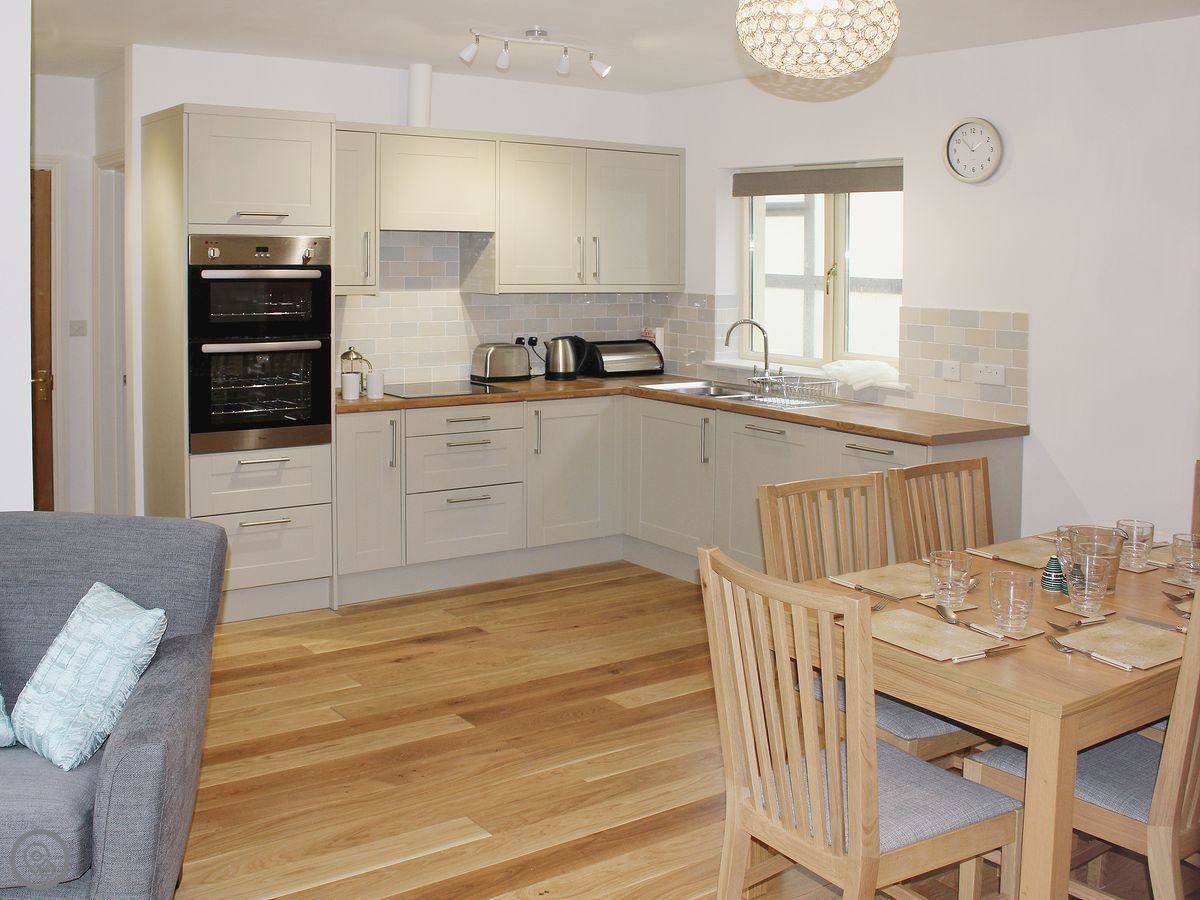 It sleeps six. Three bedrooms, two bathrooms, one of those is an en-suite. It's a 4 Star place. The layout is all on the ground floor. The kitchen is a good size, with doors out to the patio. The living room is cosy.