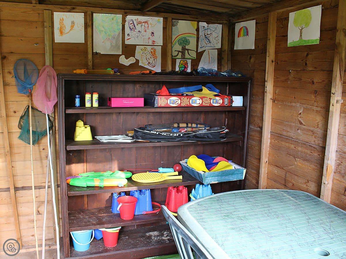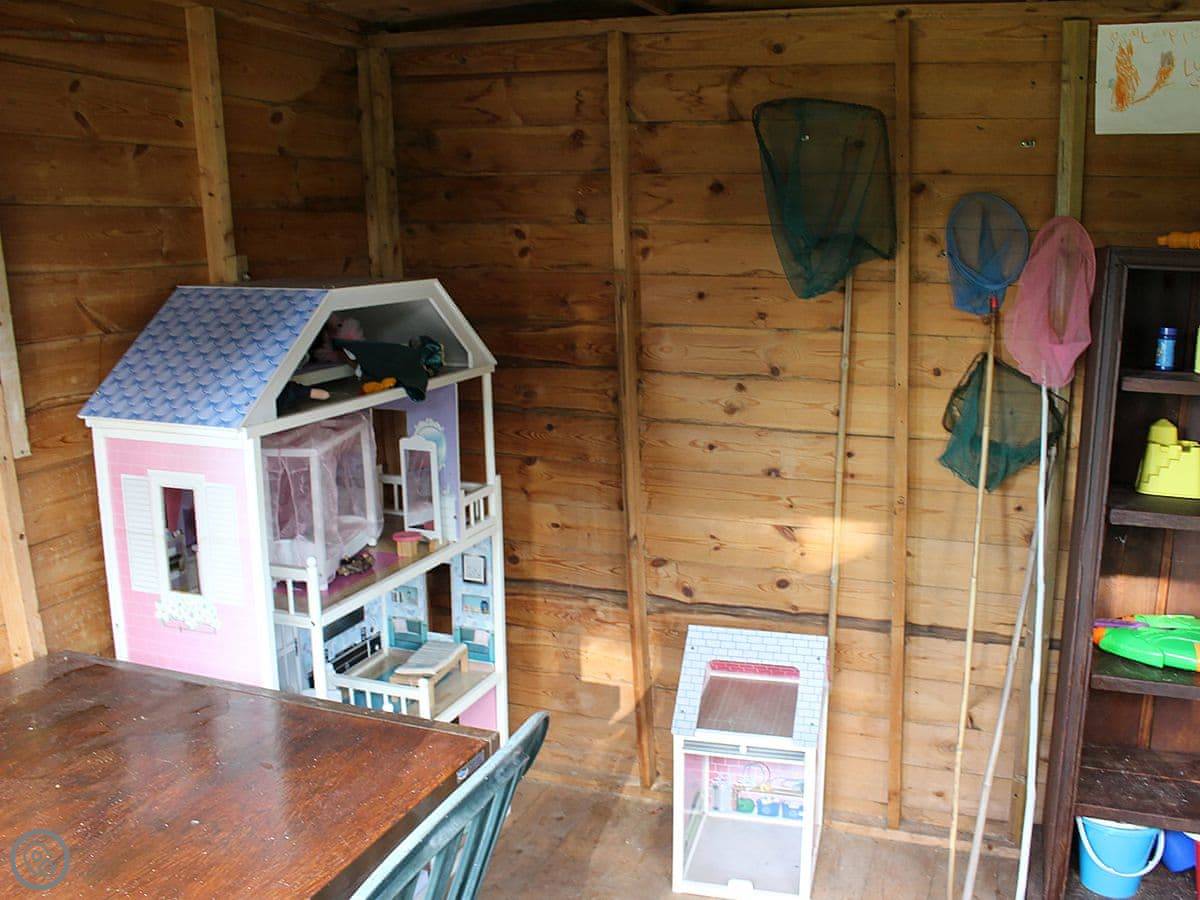 There's a separate shed in the garden called 'The Drey.' The kids can use it for playing or crafts. There are some outdoor games in there too. We've got red squirrels in the garden sometimes. There's an outside tap for washing off muddy boots or bikes.