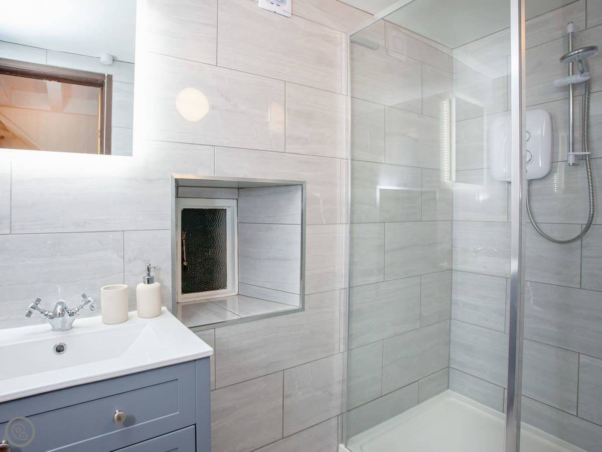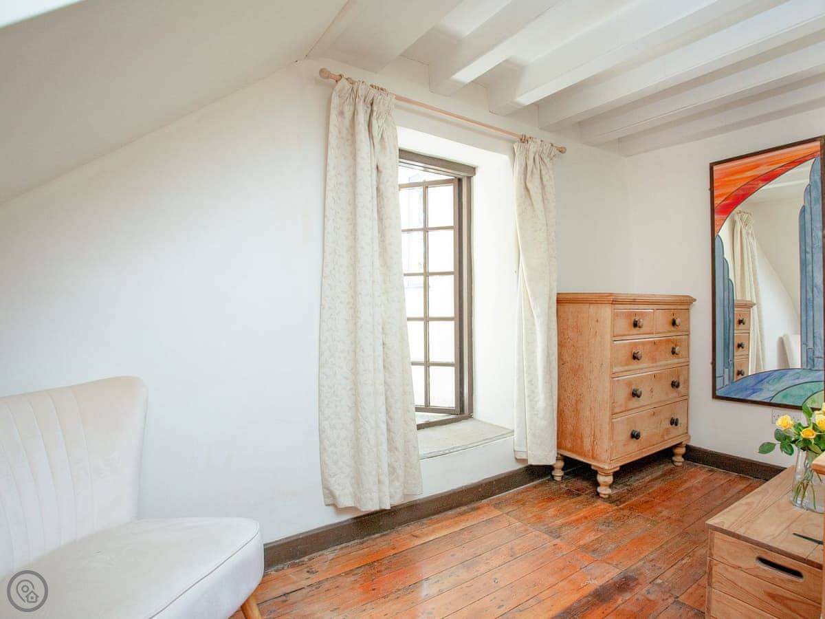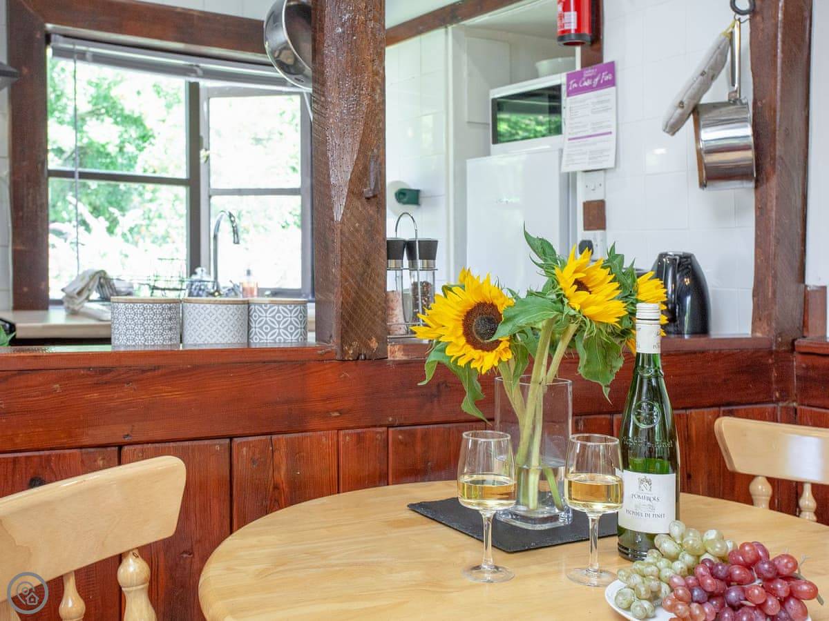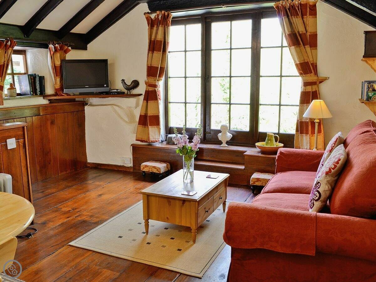 Alyshan is a cottage in Merrymeet. It's detached but in our garden, so we're next door if you need anything. It's an old place, from the 1700s. You can see the beams and the original floorboards. There's a big picture window that looks out over our stream and the fields.
