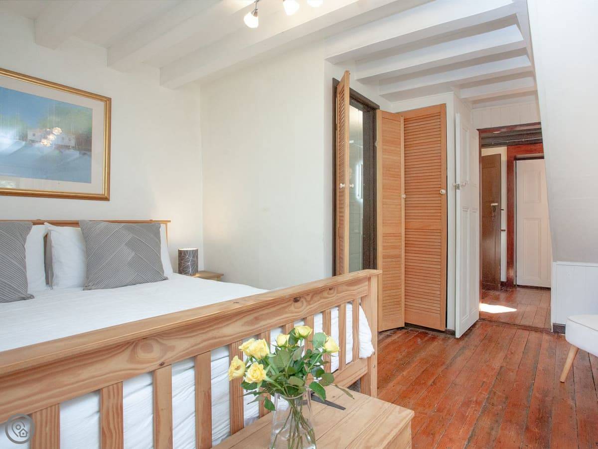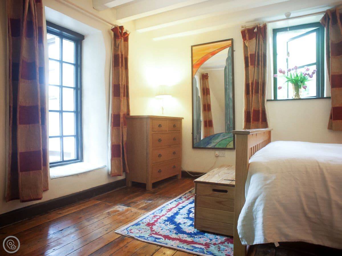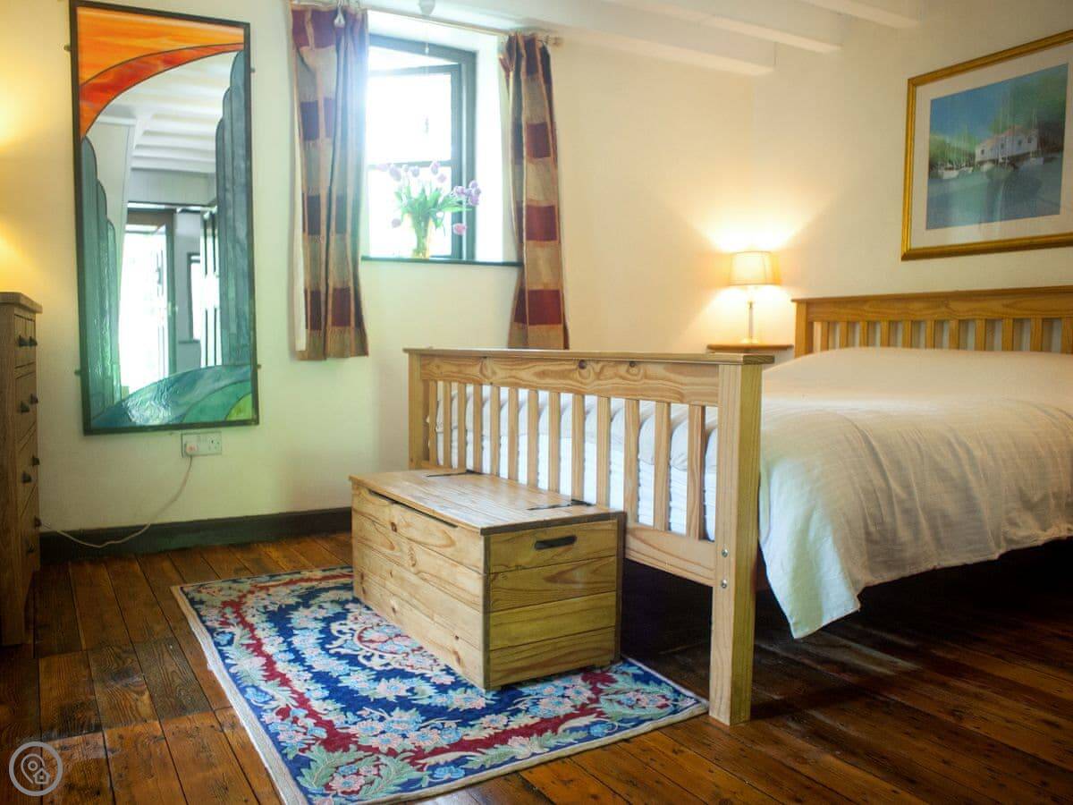 It's for two people. One bedroom, one bathroom. It's got a 3 Star rating, so it's comfortable and clean. We allow two dogs. The garden is yours to use, and there's parking right outside.