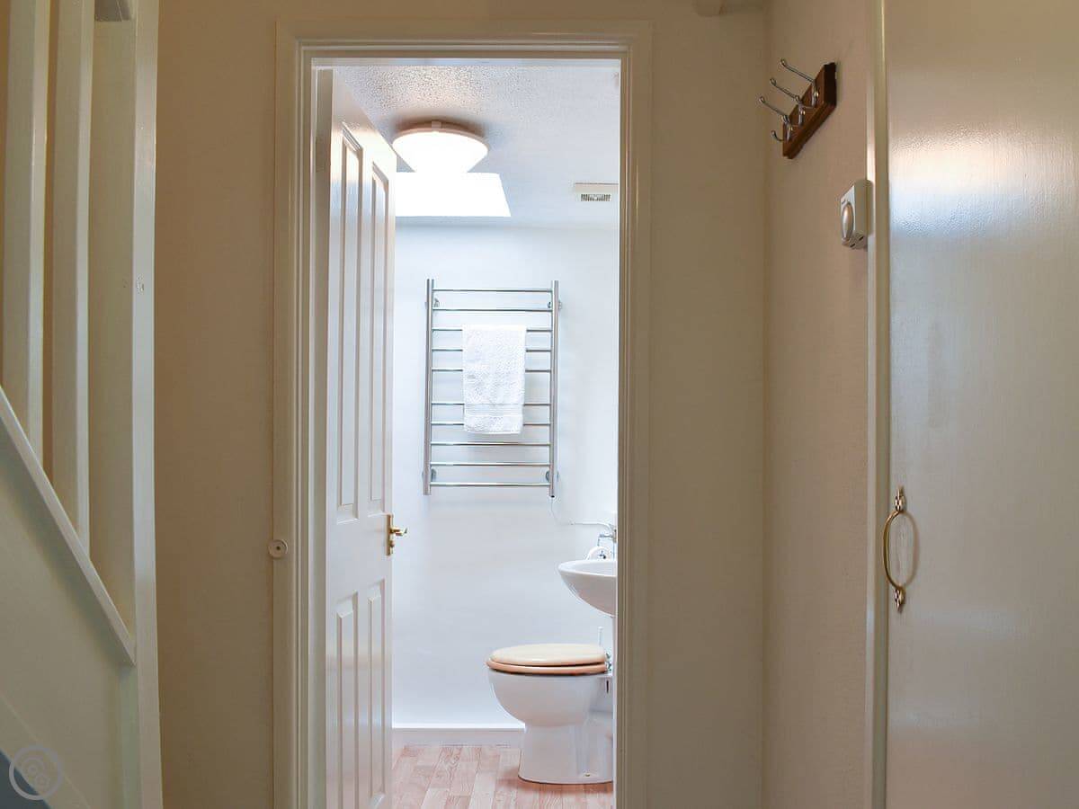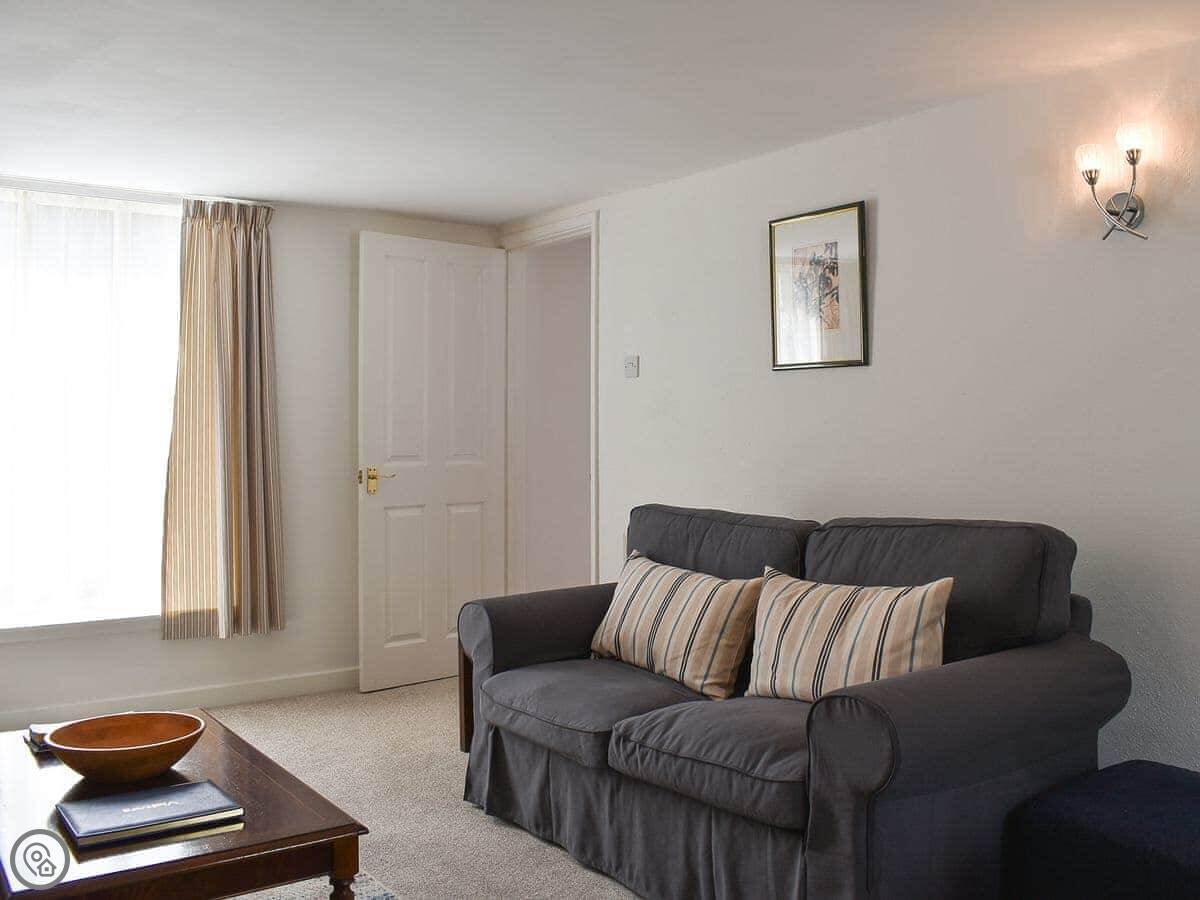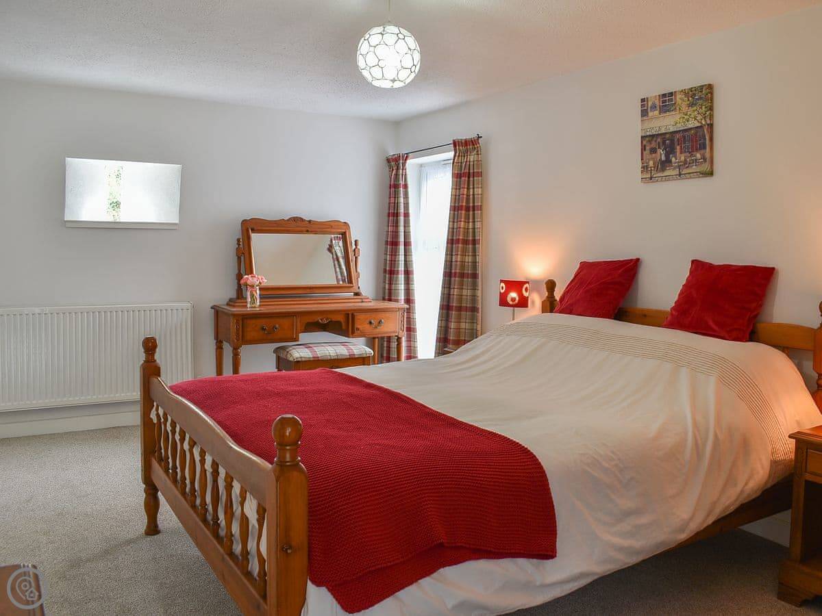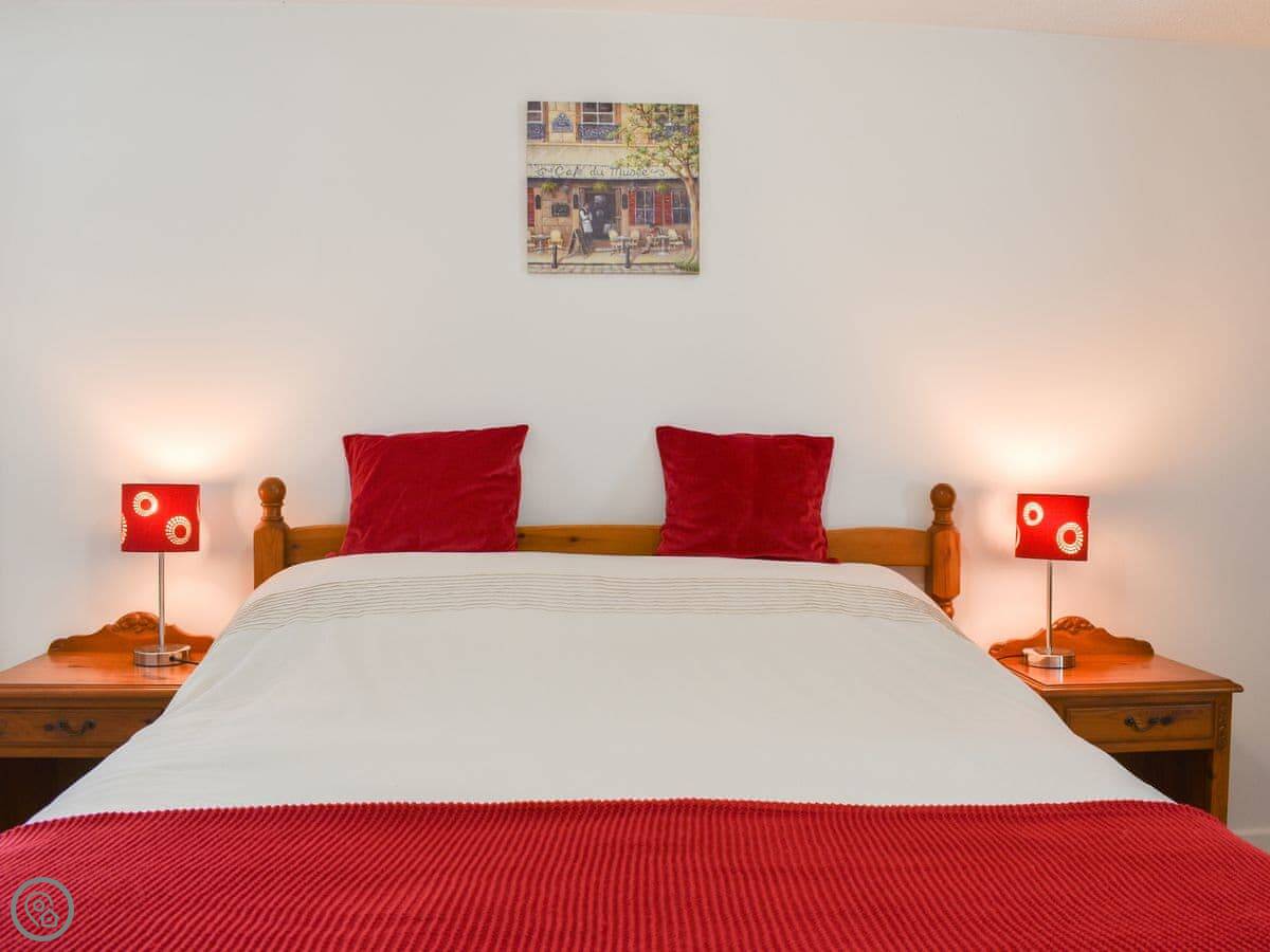 The cottage sleeps two. There's a double bedroom downstairs and a twin room upstairs under a vaulted ceiling. It has a 4 Star rating. The stairs are a normal cottage staircase, so they're a bit steeper than in a modern house.