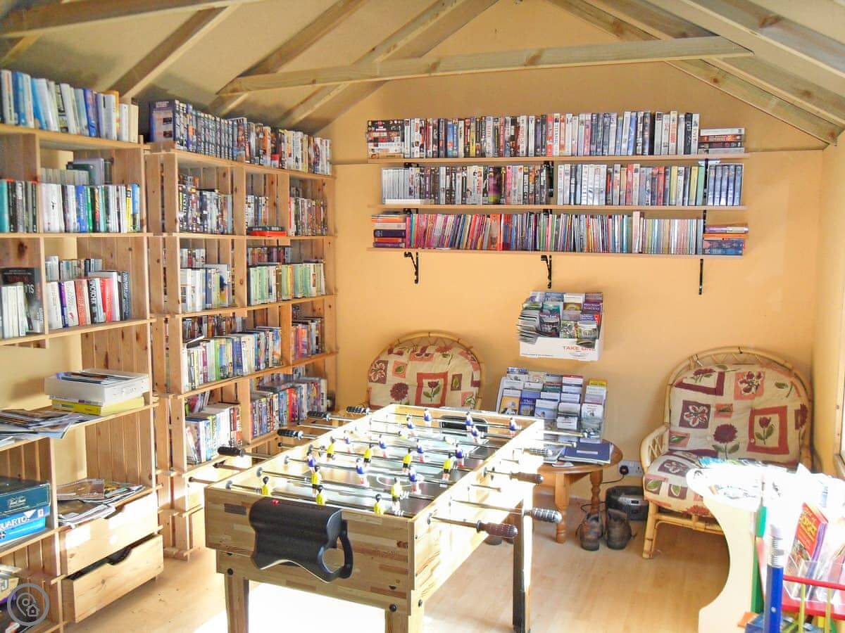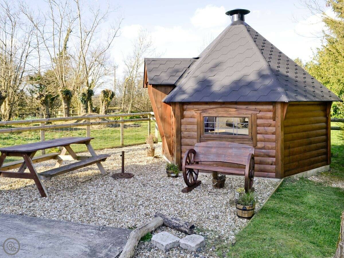 The farm site is about two acres. There's a duck pond and a games room. They've also built a big Finnish-style indoor barbecue hut that seats about fifteen. You can book that separately if you want. There are a few other holiday homes here too, so it can be quiet or sociable depending on who's around.