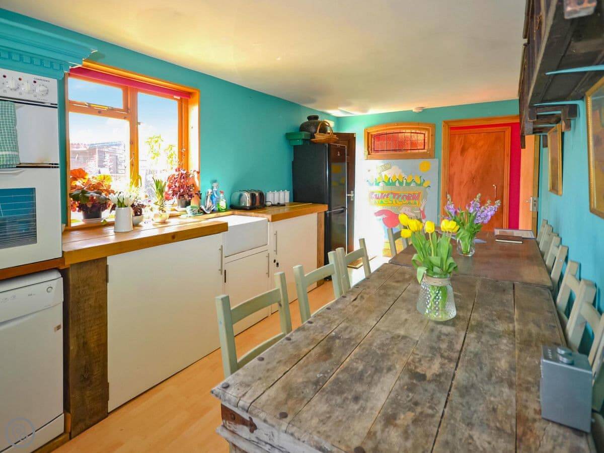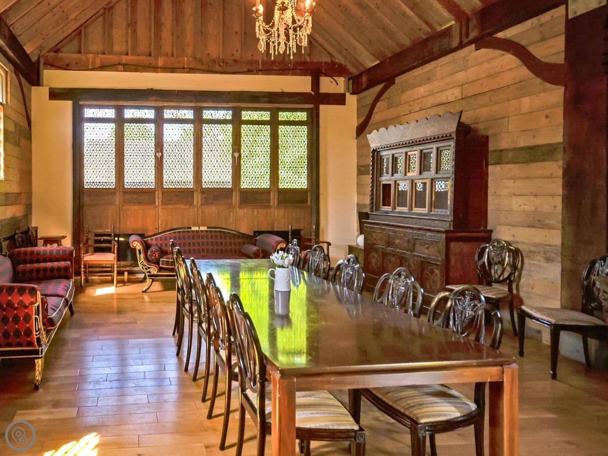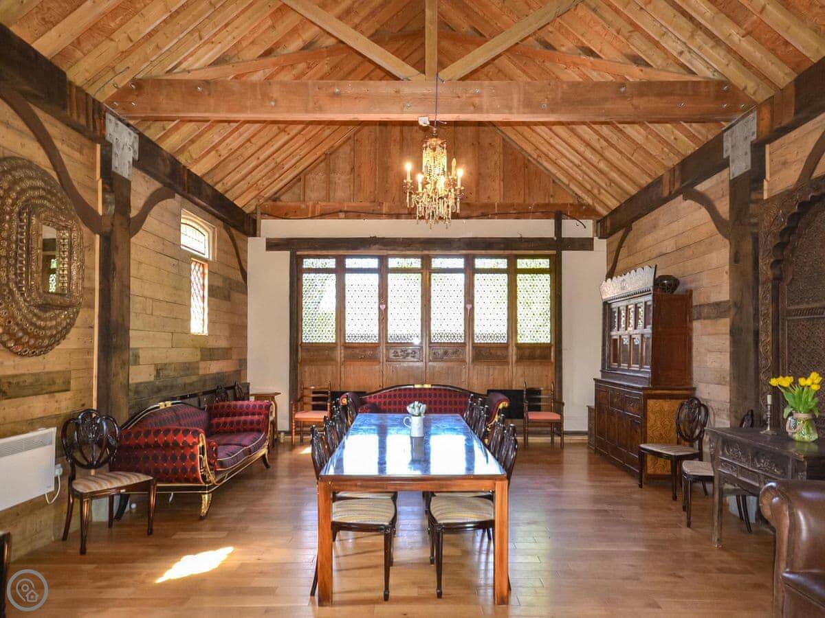 A fun rustic barn set within the heart of Sussex. The perfect large celebration house for families or groups wishing to explore this area which offers many activities and attractions on the doorstep. The Timber Store is a great space set in a beautiful countryside setting and a fantastic rural retreat to explore this area of Sussex. The main living area is a grand open space with a large dining table perfect for celebratory meals or a gathering before setting out for the days’ activities. There are also sofas available in this area for relaxing after dinner. The kitchen has another large table, a perfect spot for a hearty breakfast before heading out to the countryside. The kitchen is equipped with everything you could need for your break. The fabulous garden area is accessed from the living area and is a wonderful space to enjoy the surroundings and wildlife whilst trying your hand at some alfresco cooking in the BBQ pit!