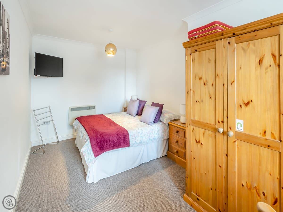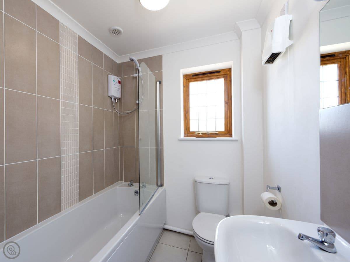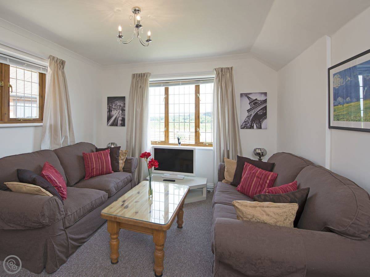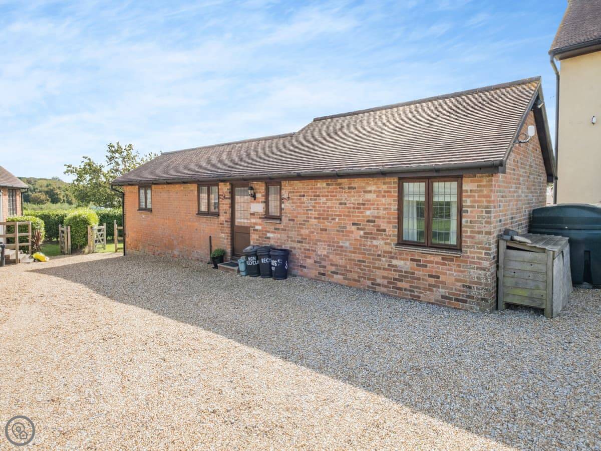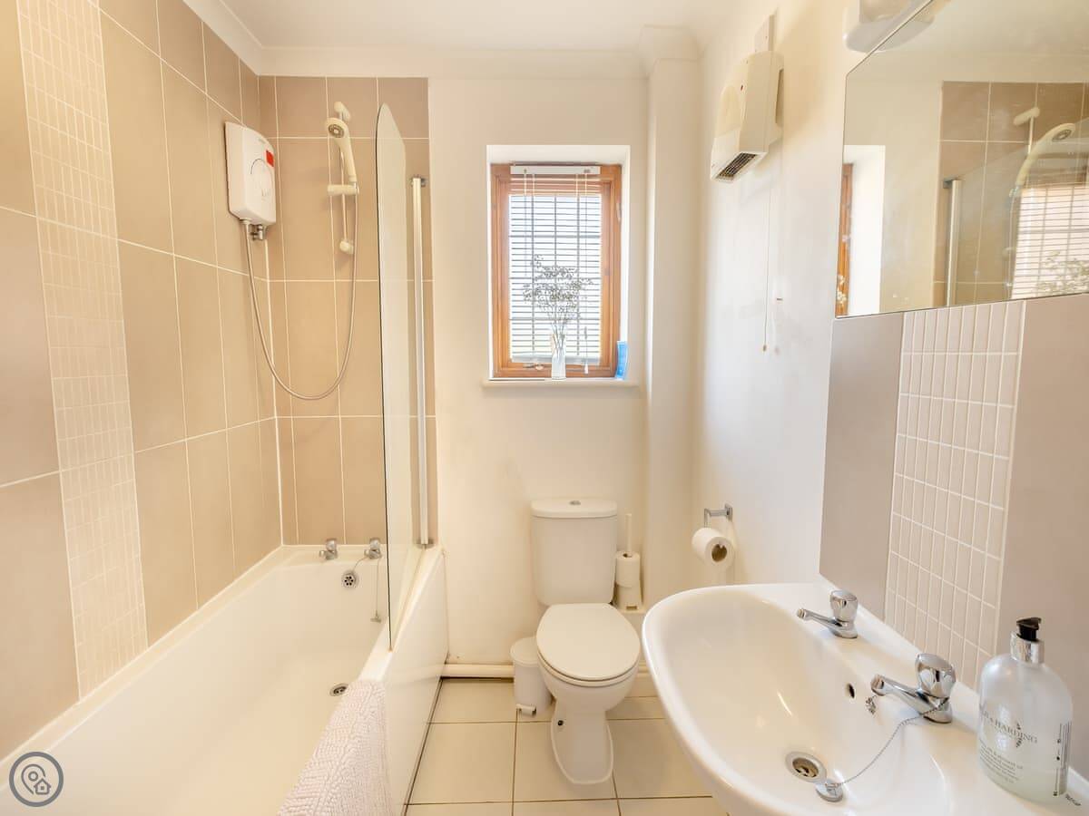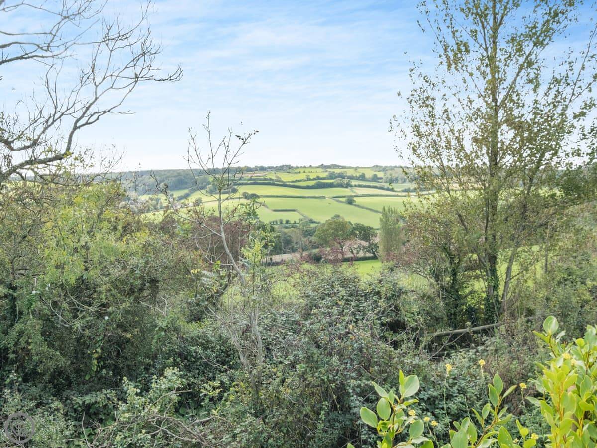 The garden is enclosed, which is good if you're bringing dogs. You can have up to two. There's a table and chairs out there, and a barbecue. The view is over fields, because of the hill.
