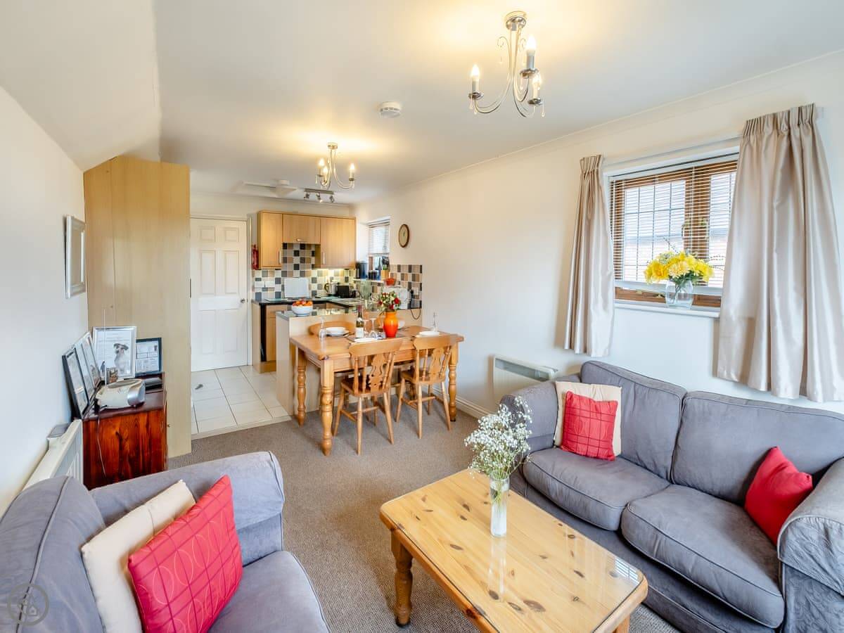 Inside, it's open plan. There's a dishwasher and a washing machine. It's modern and clean. Everything's on one level, which some people find easier.
