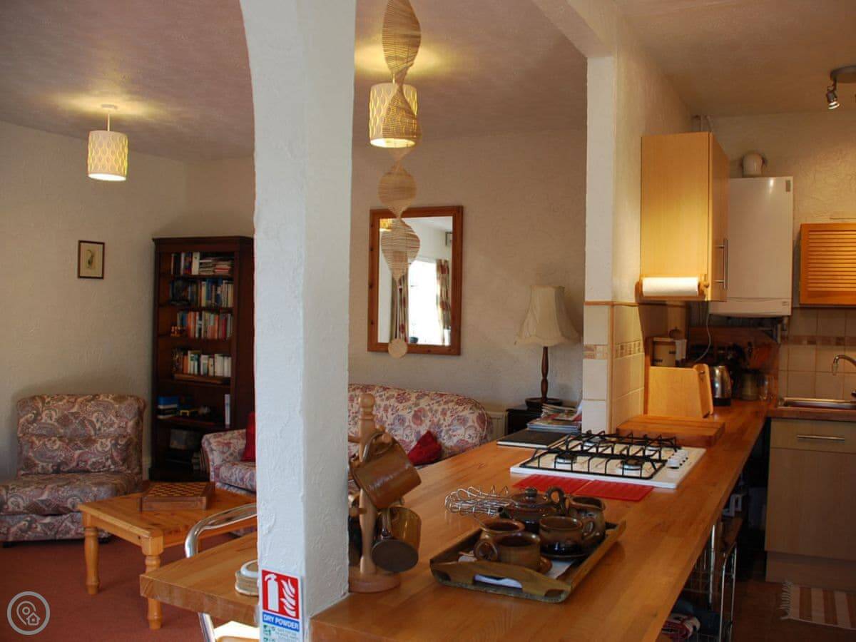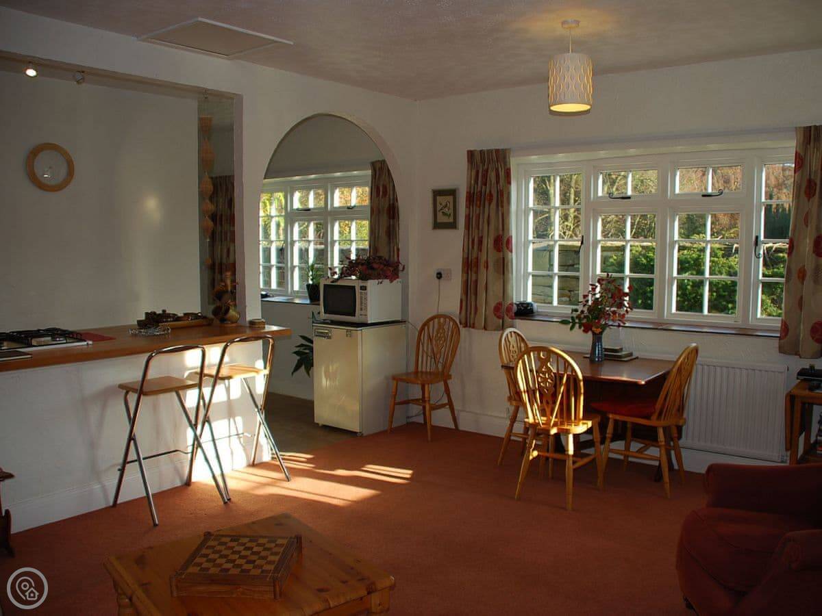 The Pottery Annexe is in Baslow. It's a one bedroom place attached to our house. We have a working pottery workshop here, so you might hear the wheel or see us moving things around sometimes. It sleeps four, with a double bed and a sofa bed in the living area, so it's best for a couple or a small family.