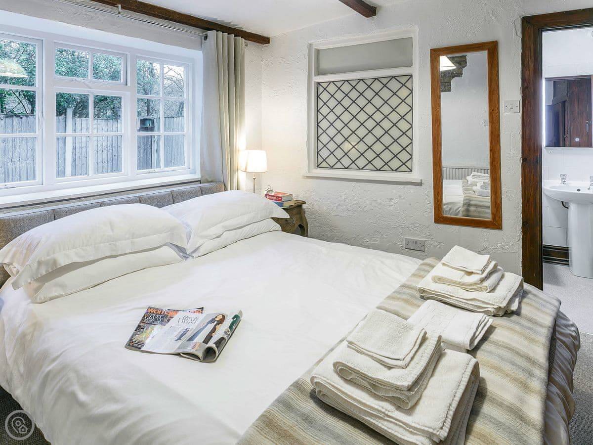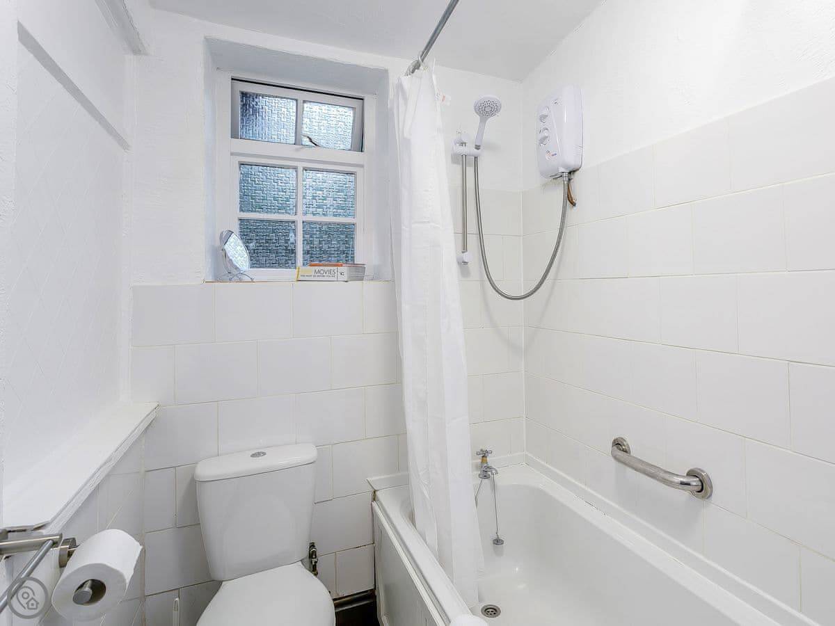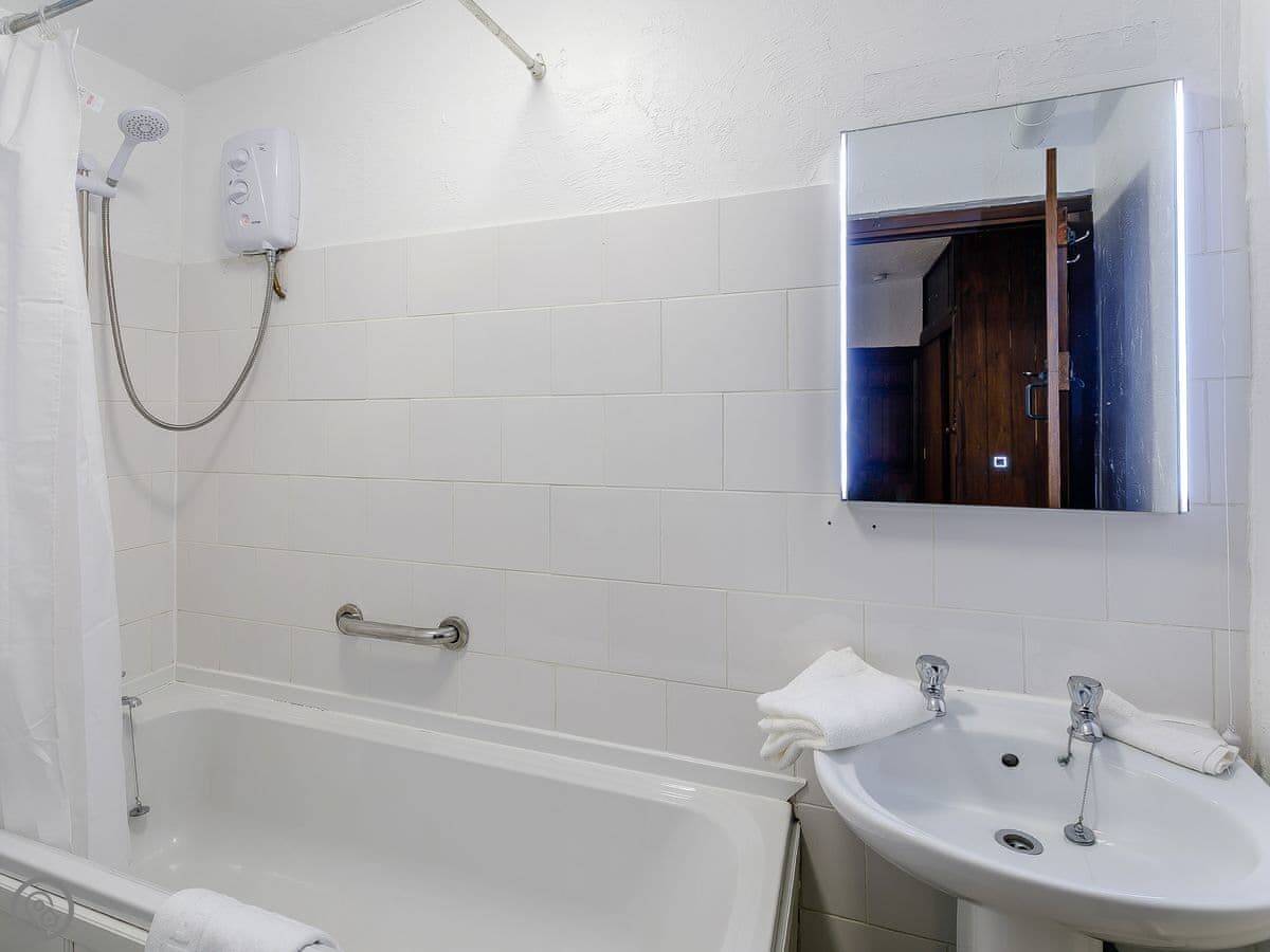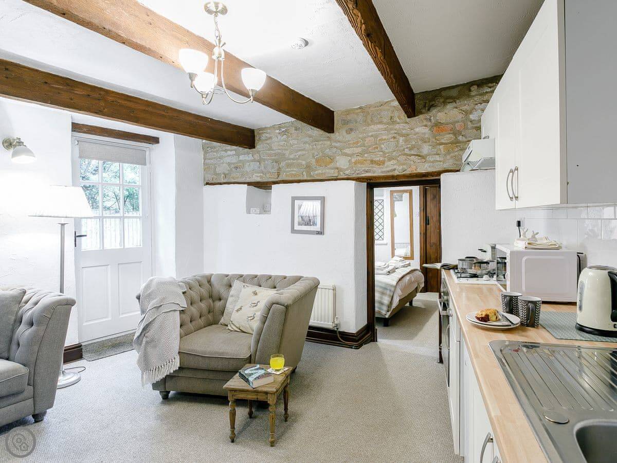 It sleeps two people. One bedroom, one bathroom. It's got a 3 Star rating, so it's comfortable and clean. It's on the ground floor, which is useful.