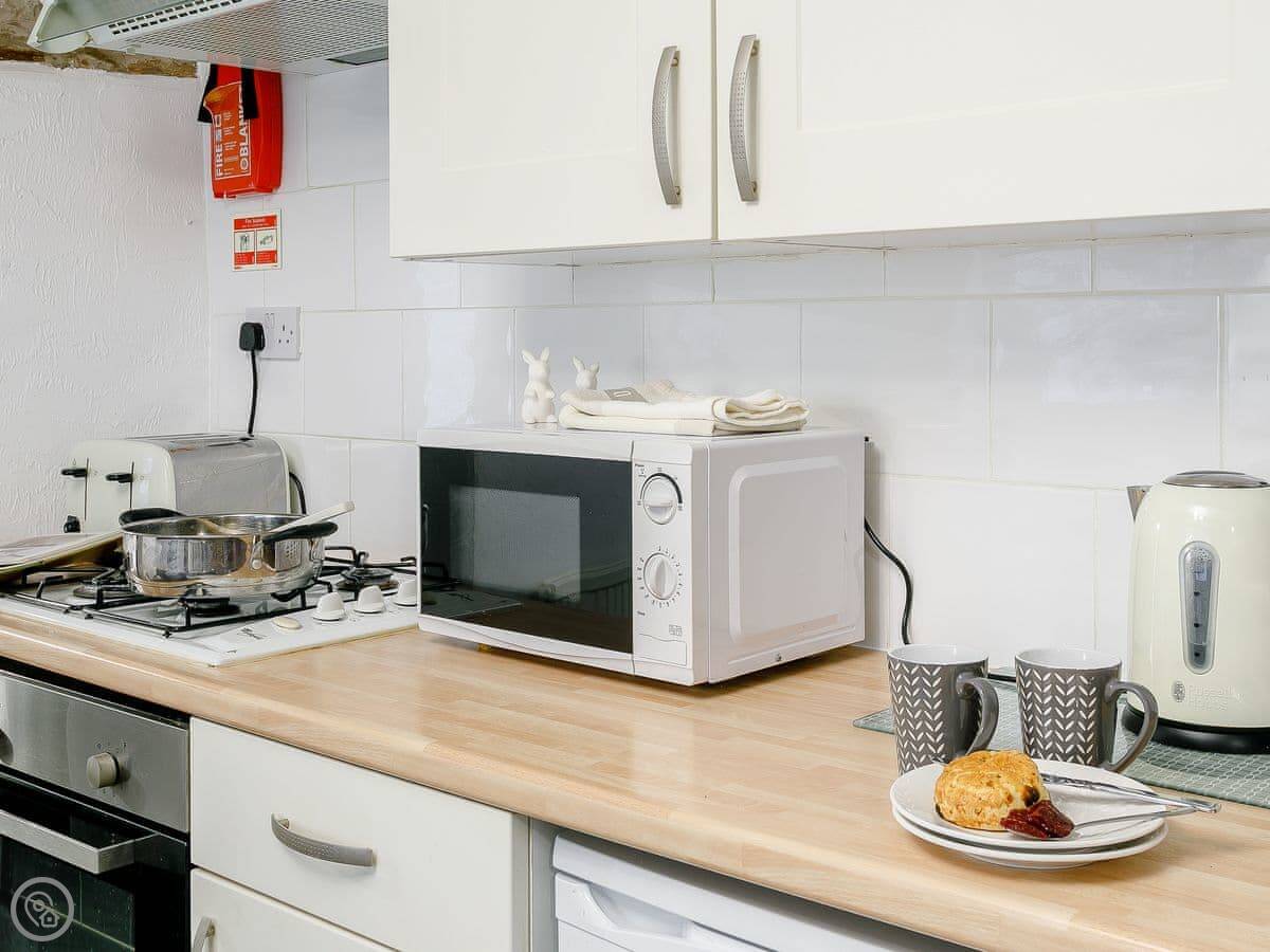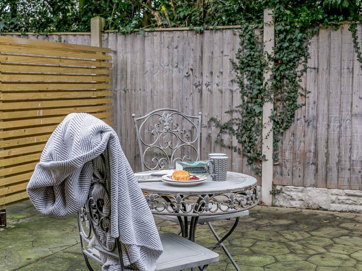 You get your own patio area. There's parking right there. The cottage has Wi-Fi and a TV. Bedding is included, and we can provide a cot and highchair if you need them.