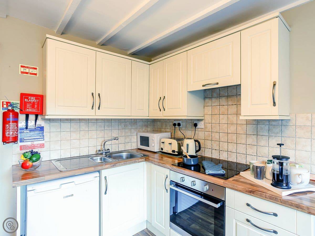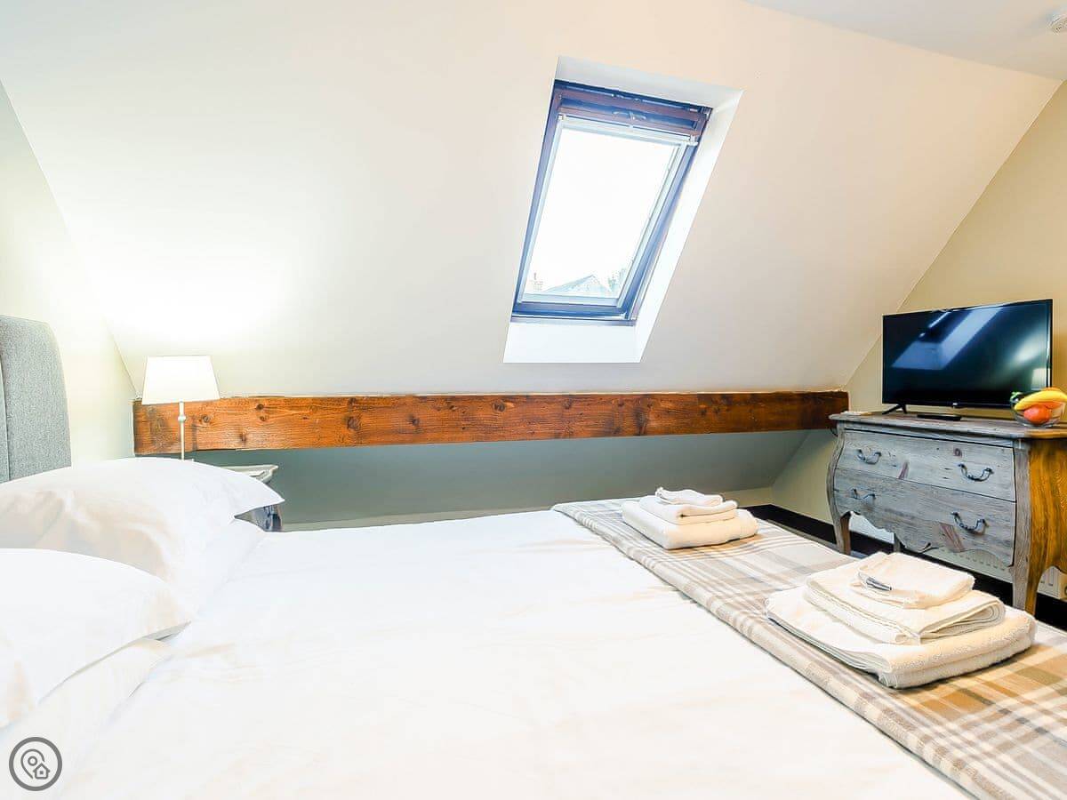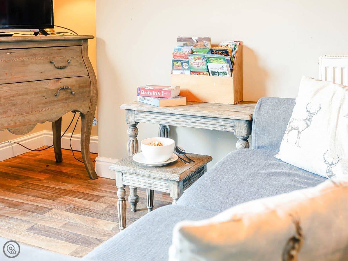 In terms of what's here: all the bedding and towels are included. There's WiFi and a TV. We've got a cot and a highchair if you need them. One well-behaved dog is welcome. Parking is right outside the cottage.