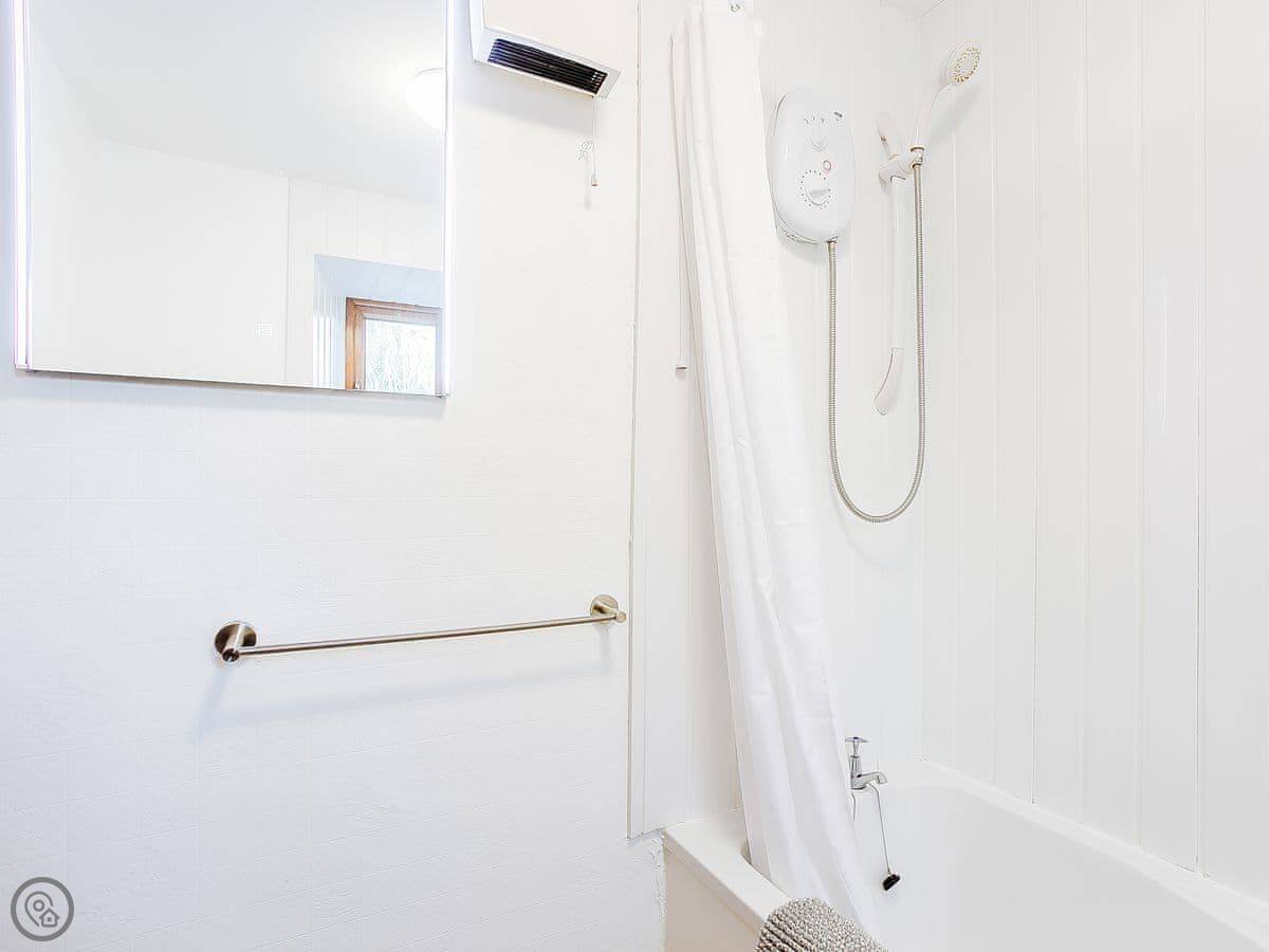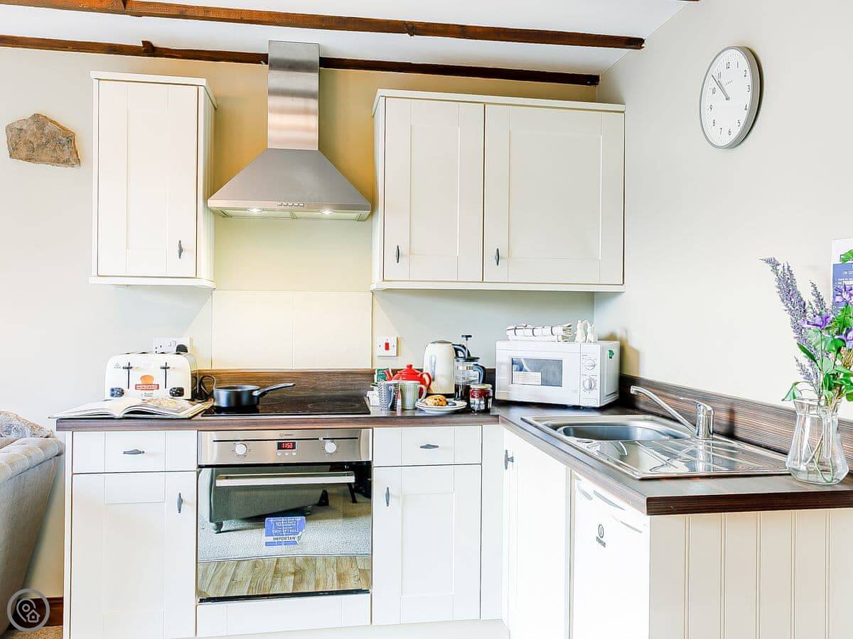 It's for two people. One bedroom, one bathroom. It's a 3 Star place, which we keep clean and tidy. It's part of a set of four cottages, so you might see other guests coming and going, but you've got your own front door.