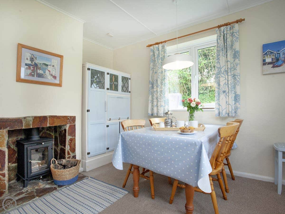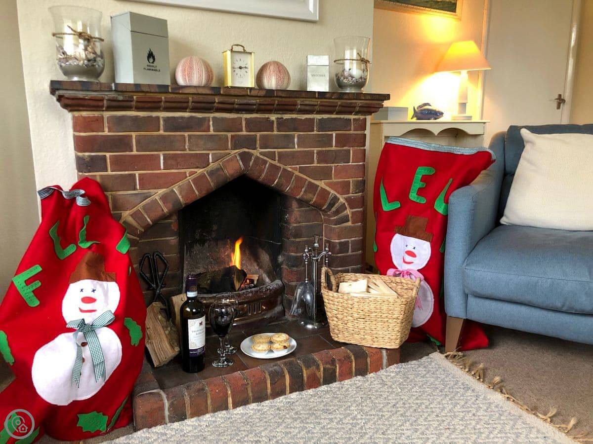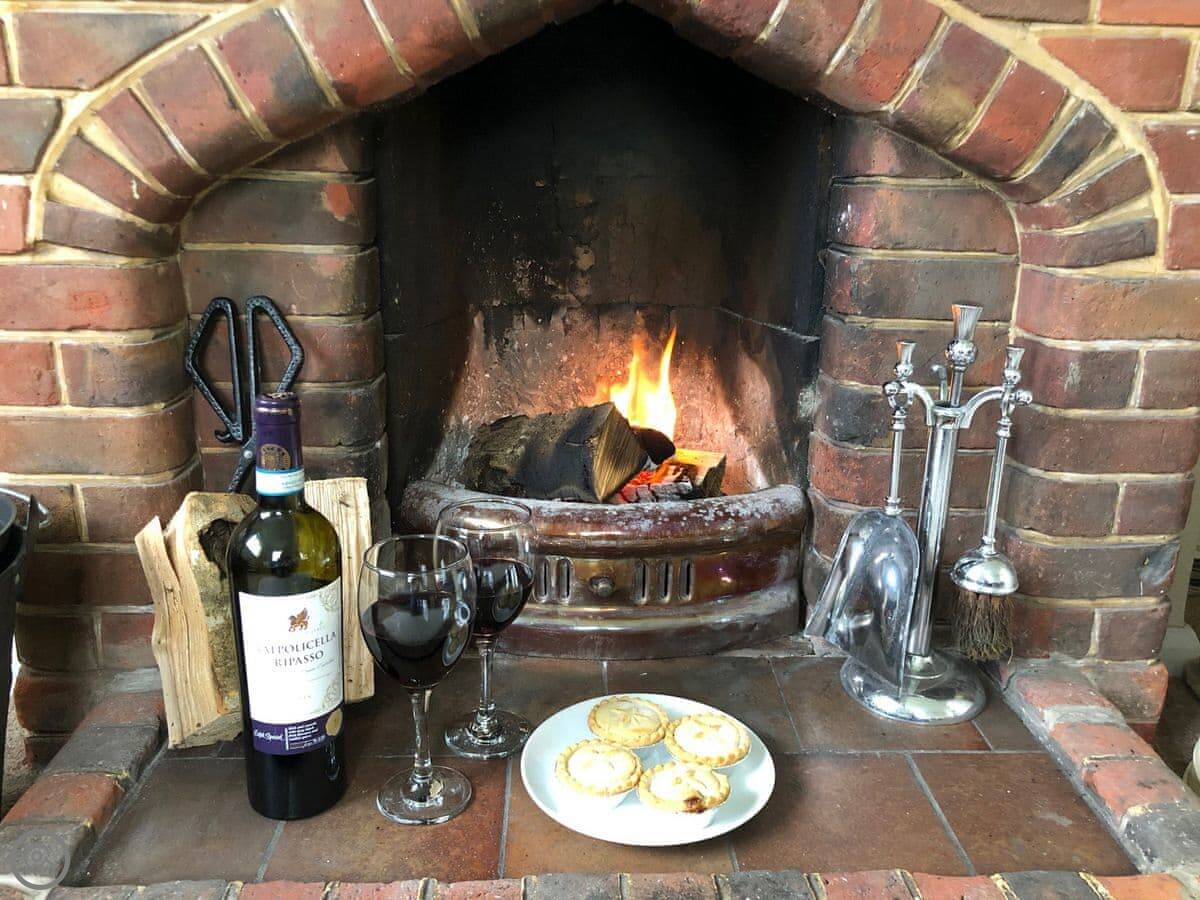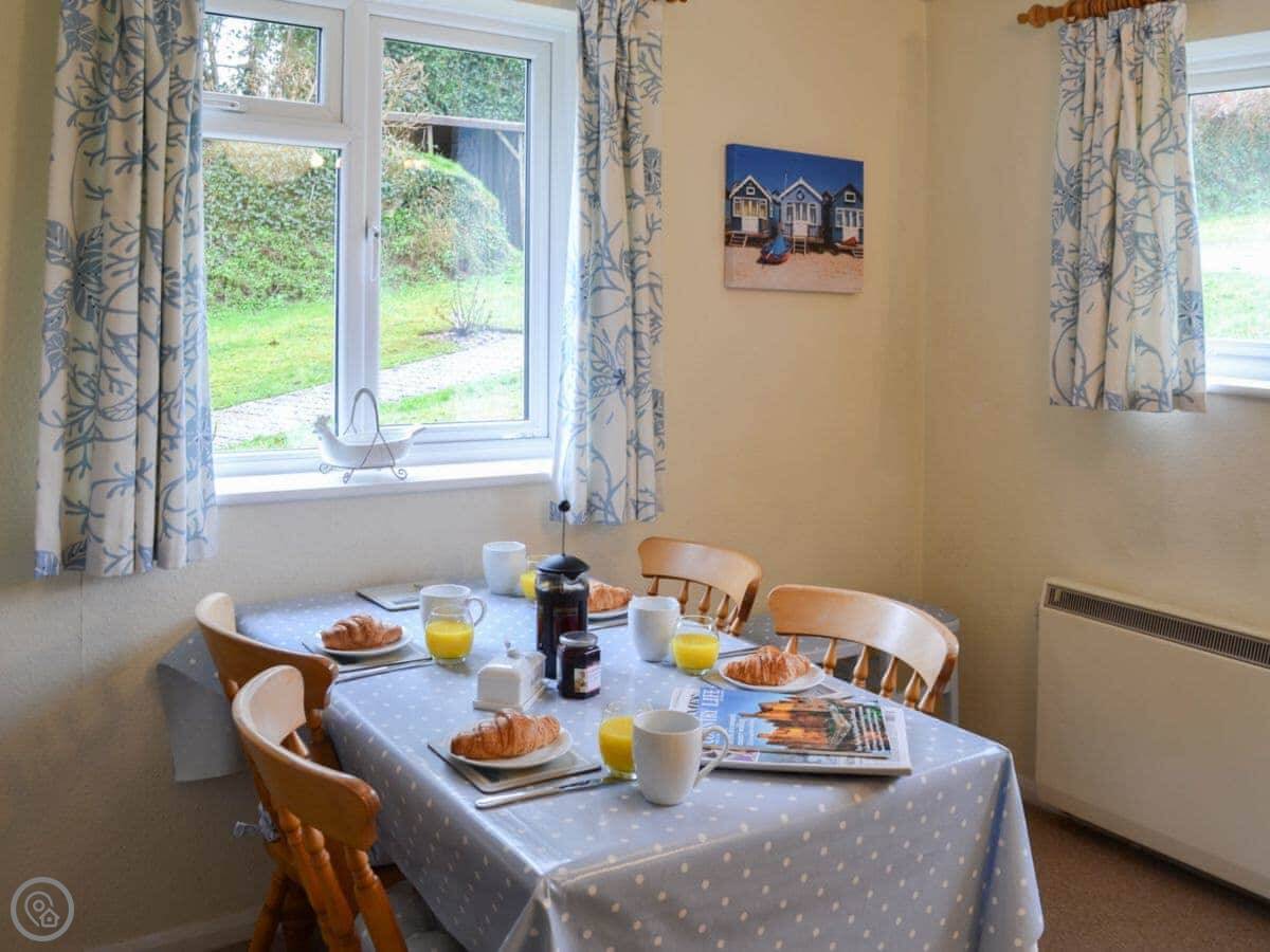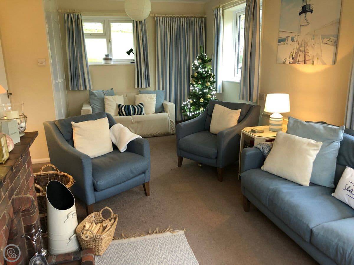It sleeps four. Two bedrooms, both en-suite, so a bathroom each. It's got a 4 Star rating. It's modern and well-kept. The layout is all on one level, which is useful. There's a woodburner for cooler evenings.