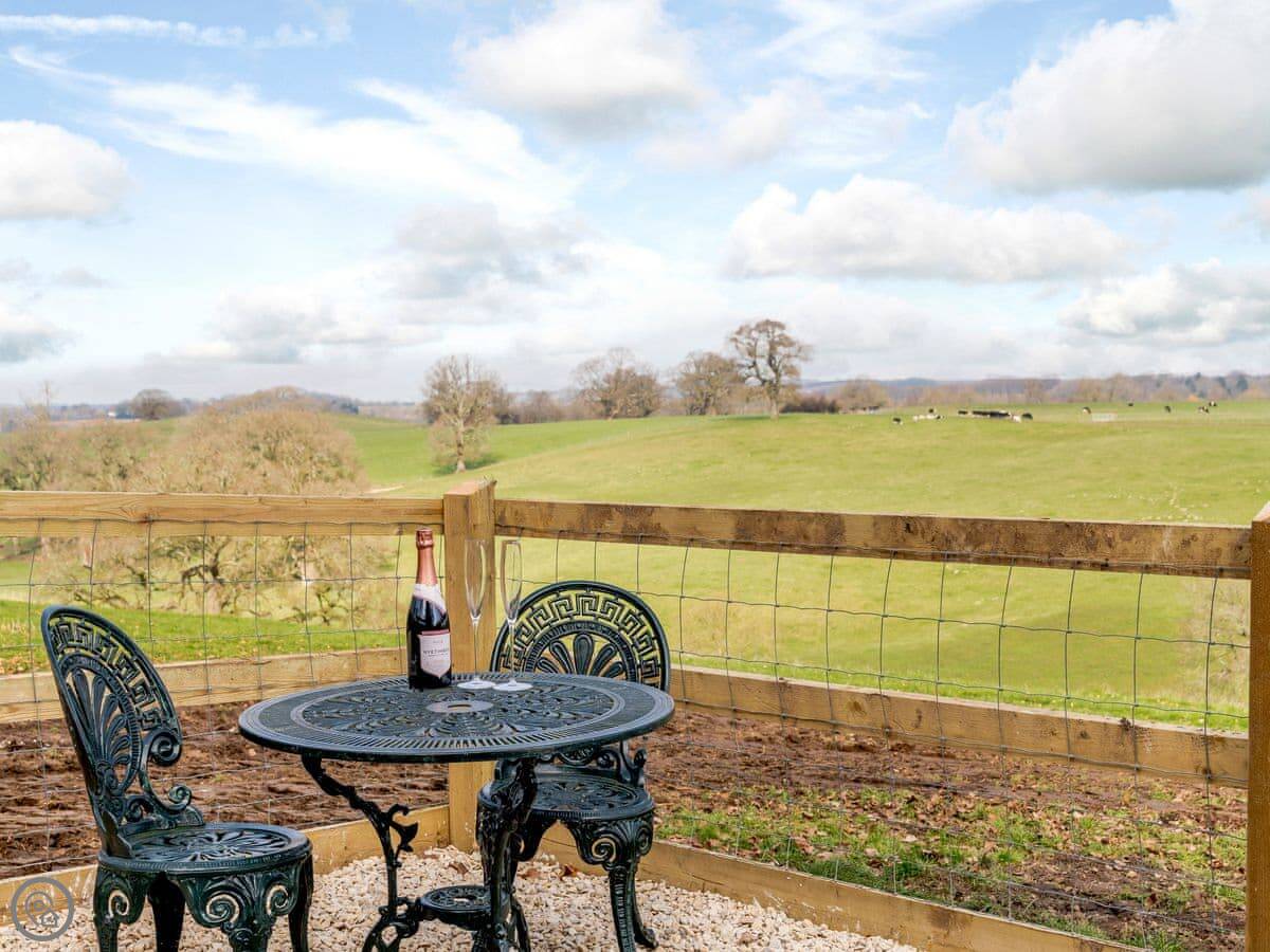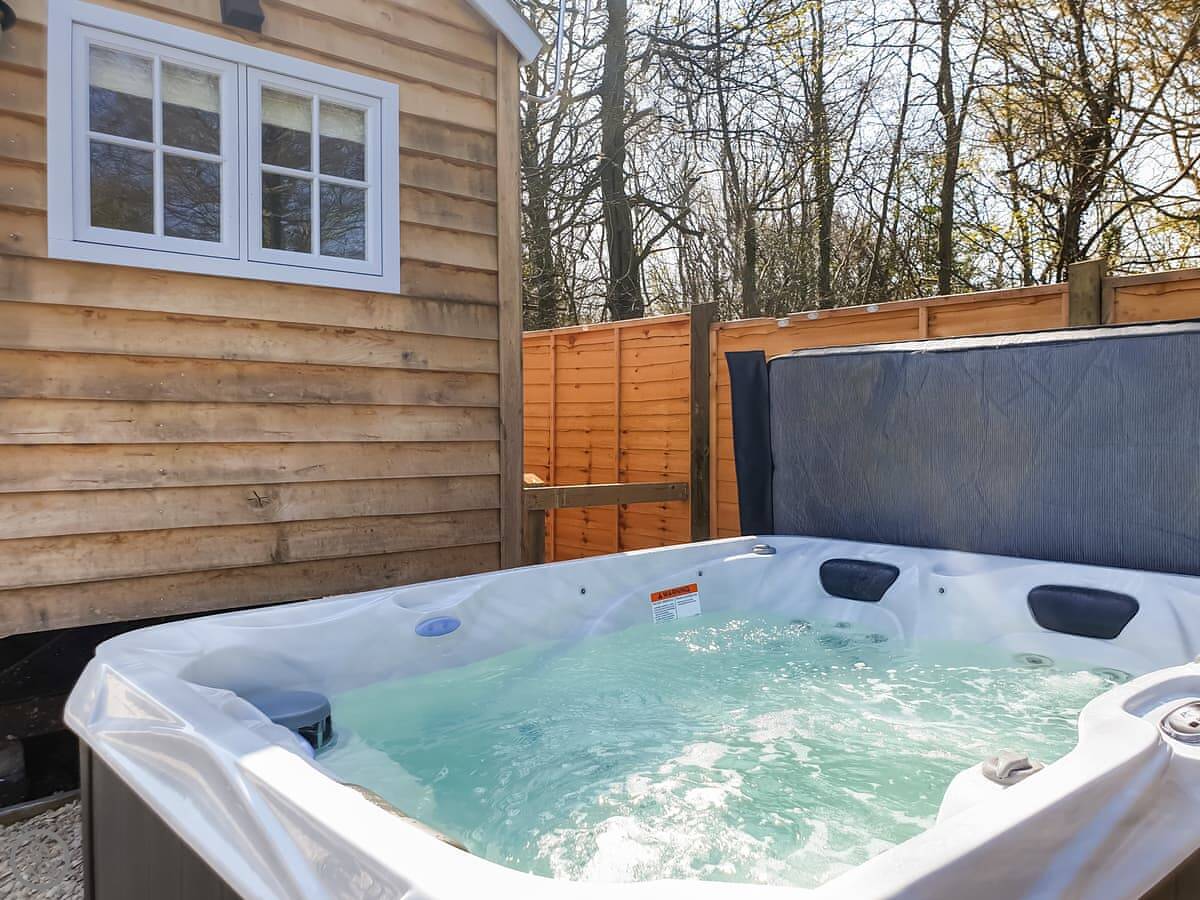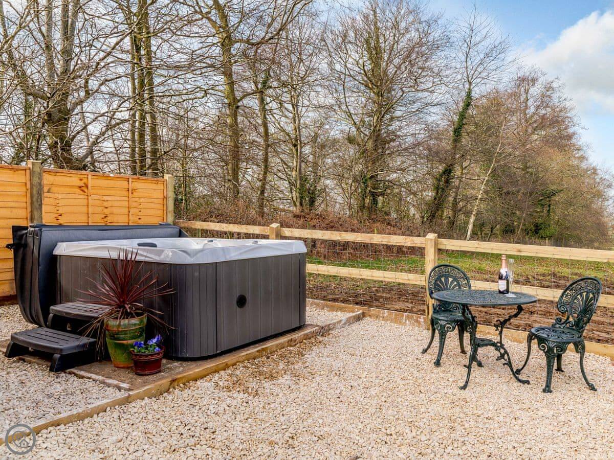 It sleeps two. One bedroom, one shower room. It's got a 4 Star rating, which means it's well done and comfortable. It's all on one level, so there are no steps inside. The entrance and some internal doorways are wheelchair accessible, but the terrain outside to the hot tub is a grassed field path, so that might be trickier depending on mobility.