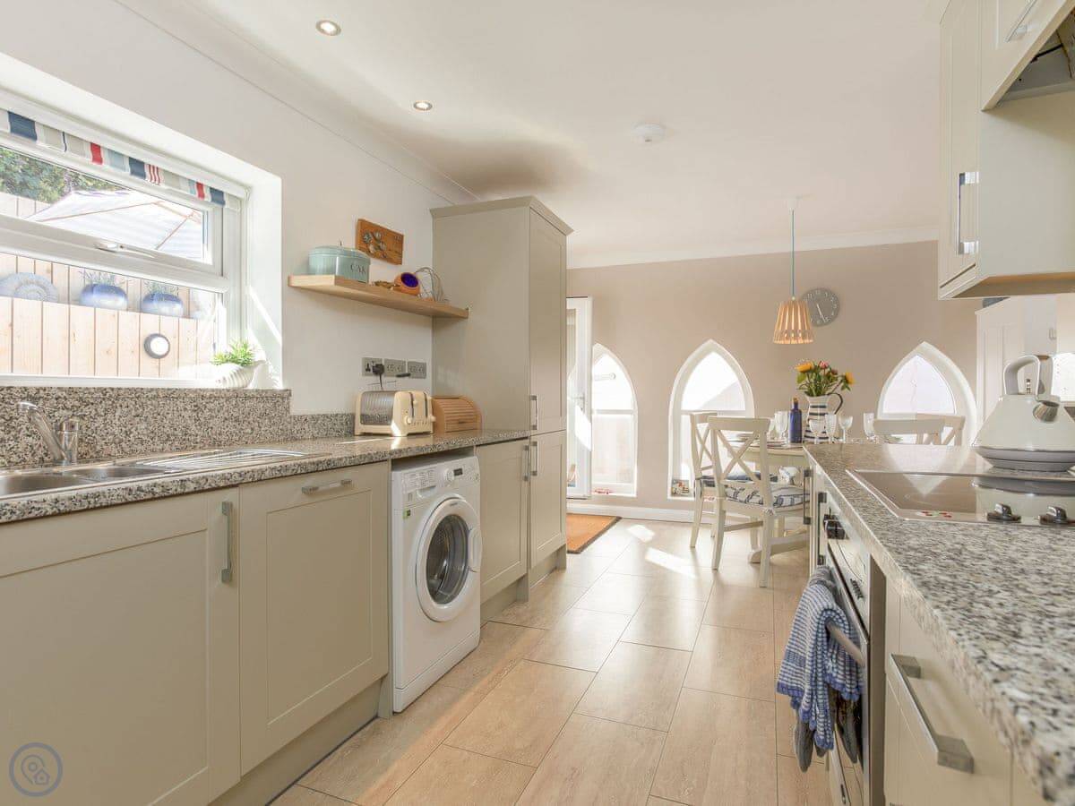 Facilities: WiFi, TV, dishwasher, washing machine. Bedding and towels are included. There's a cot and a highchair if you need them. No pets, sorry.
