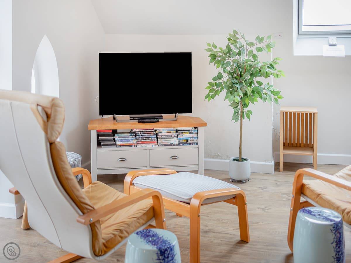 For heating, it's got storage heaters and an electric wood-effect fire in the living room. It's comfortable in the cooler months.
