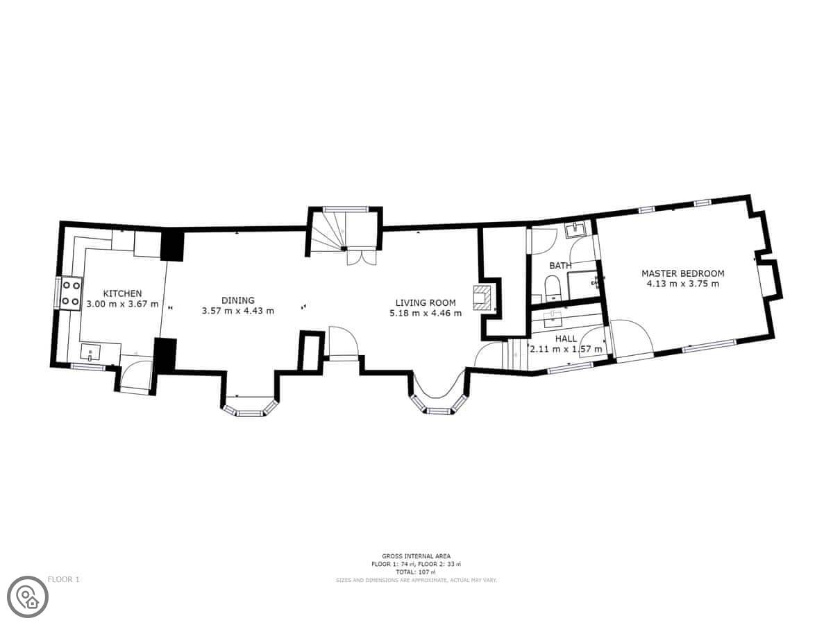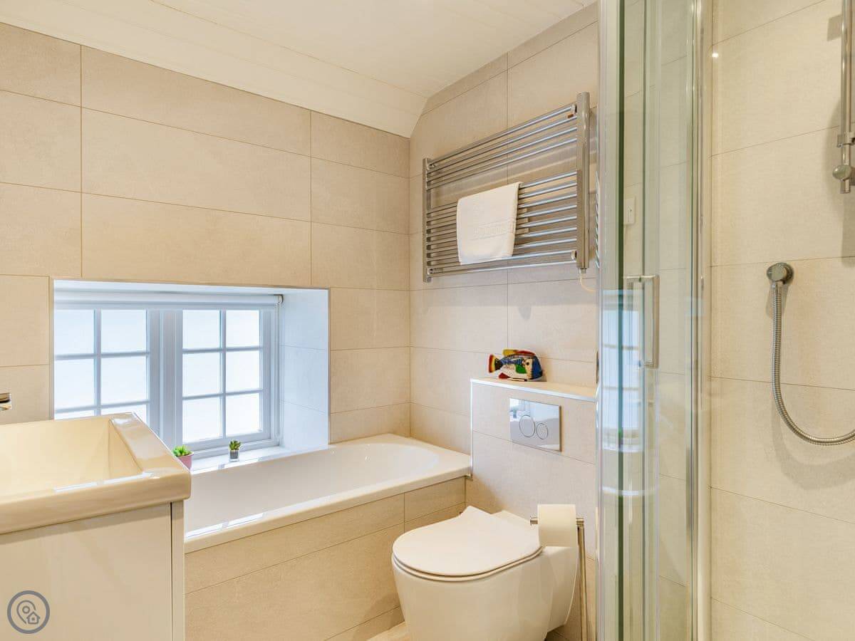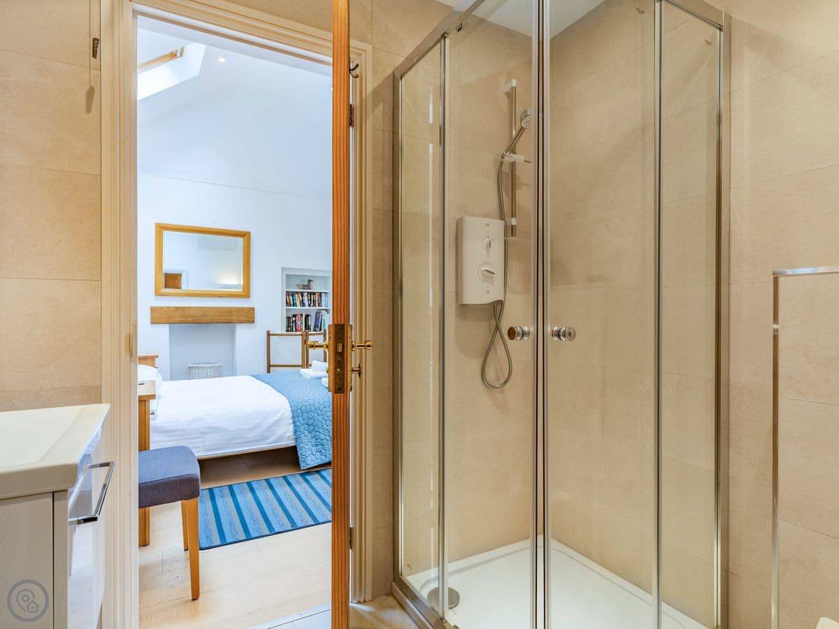 The stairs are traditional cottage stairs. They're fine, just mind your head a bit. One of the bedrooms is on the ground floor with its own shower room, which is handy.