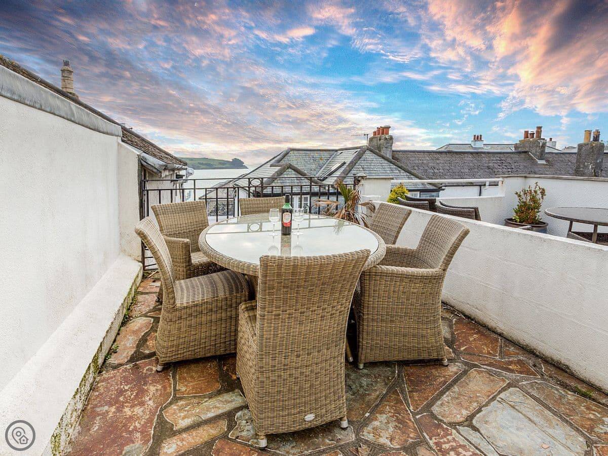 The Lobster Pot is in the middle of St Mawes. You get good views of the sea from the upstairs living room.