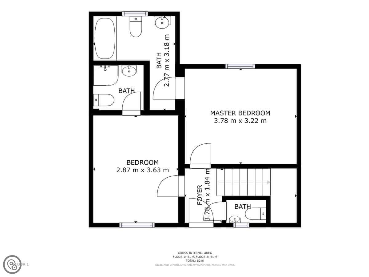 It sleeps four. Two bedrooms, both downstairs. They each have their own bathroom with a shower. One's a double, the other has twin beds. The stairs go up to the main living area. They're not bad, but they are a bit narrow and steep, like a lot of places here.