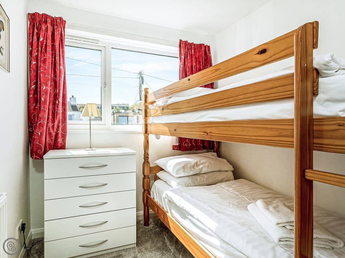 The main bedroom has a sea view and an en-suite bathroom. The second room has twin beds, and the third has a bunk bed. There's also a family bathroom on that floor.