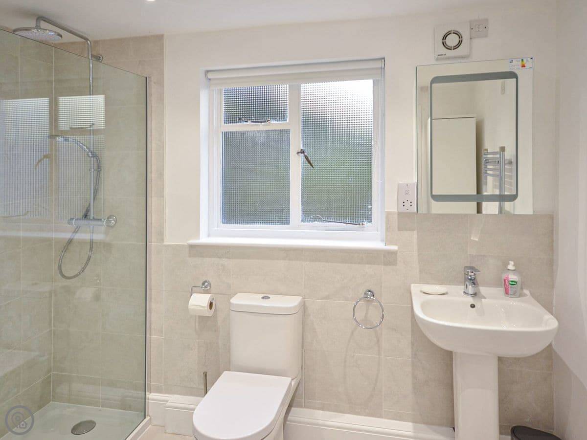 Inside, it's as described. The kitchen has an electric oven, dishwasher, fridge-freezer. There's a washing machine and dryer in the family bathroom. Bedding and towels are included. You can bring one dog.