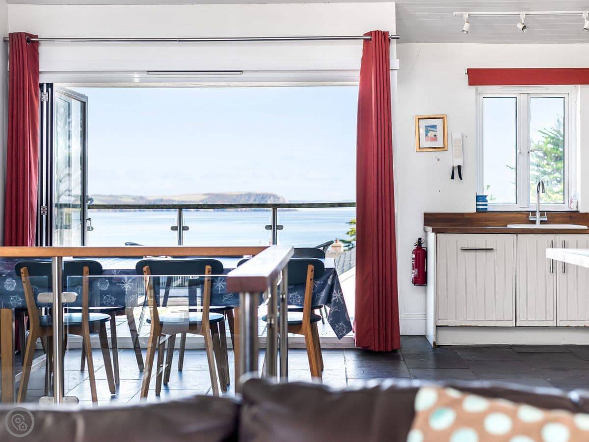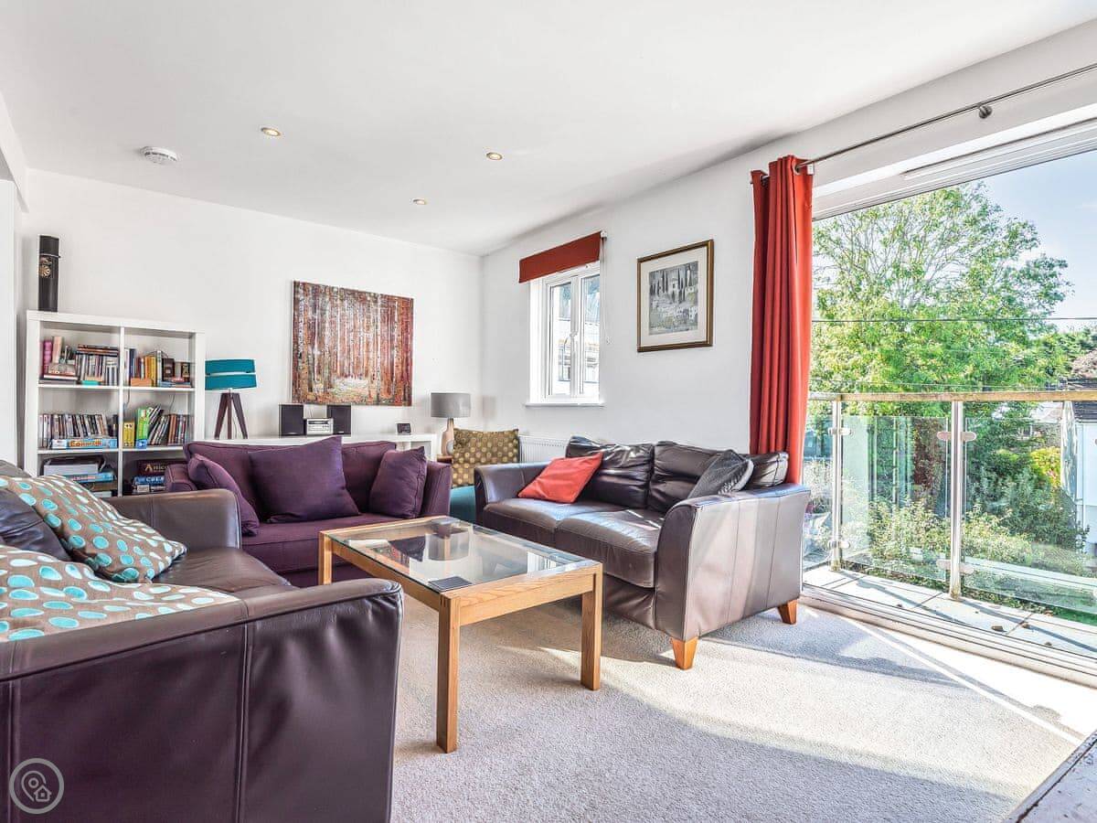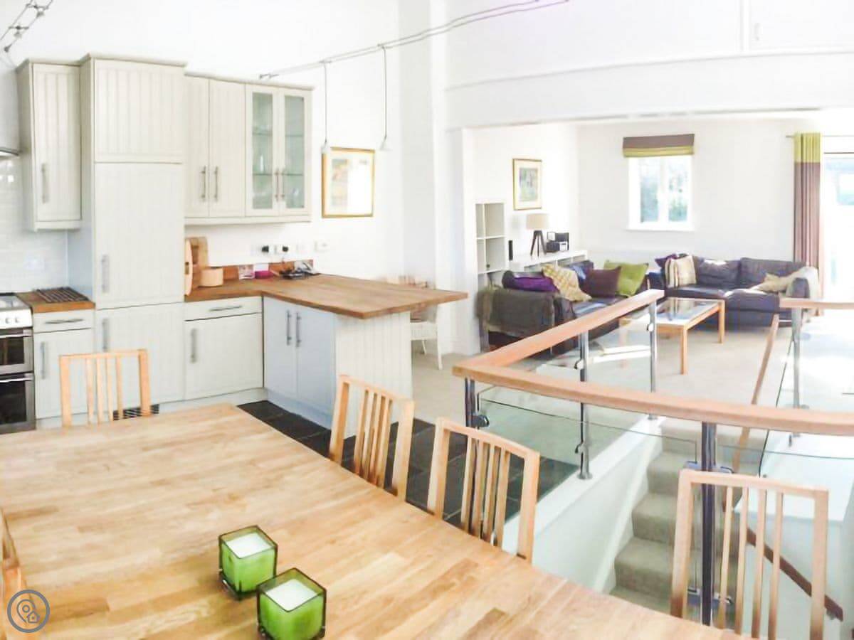 The layout is upside down. The bedrooms are on the ground and first floor. The main living area and kitchen are up at the top, on the second floor. That's where the best views are. The top floor has big sliding doors that open onto a glass balcony. You can sit out there.