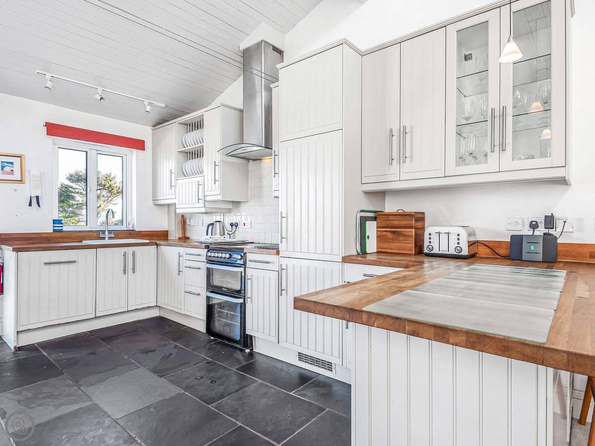 It's got underfloor heating so it's warm. WiFi works fine. In the garage, which you can get to from the hall, there's a washing machine, tumble dryer, an extra fridge, and space for beach stuff. We leave a travel cot and a stair gate there too.