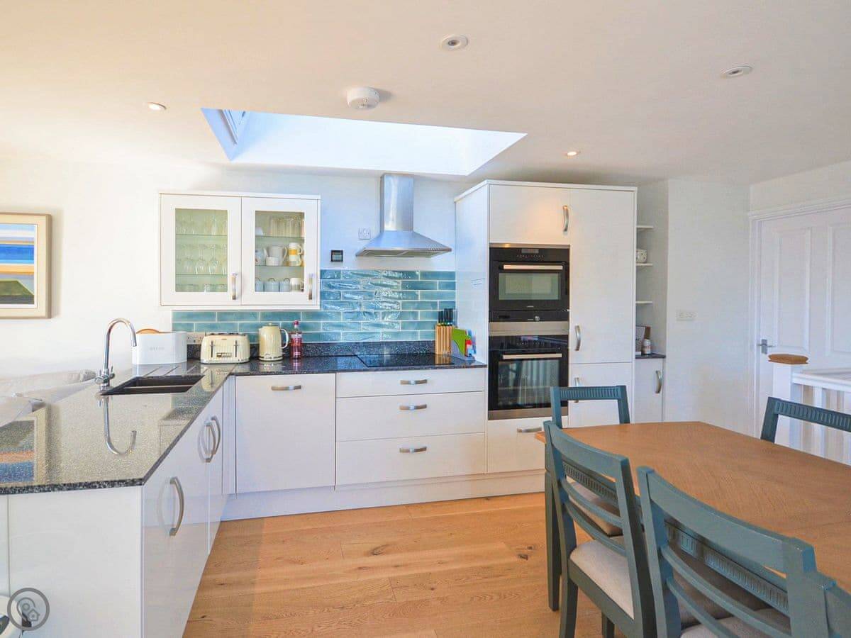 Inside, it's got the things you'd need. Washing machine, dishwasher, WiFi. Bedding and towels are included. We can provide a cot and highchair. One well-behaved dog is welcome.