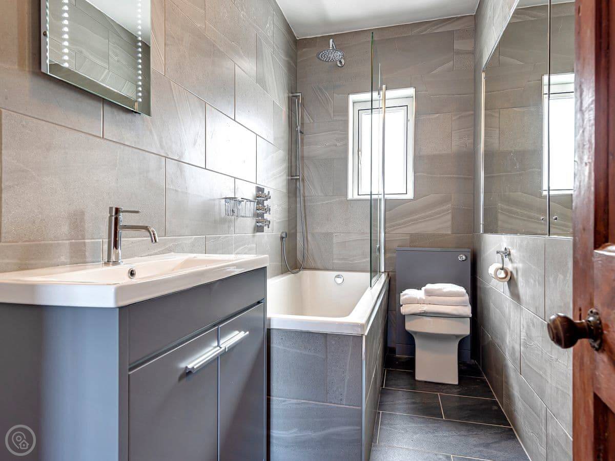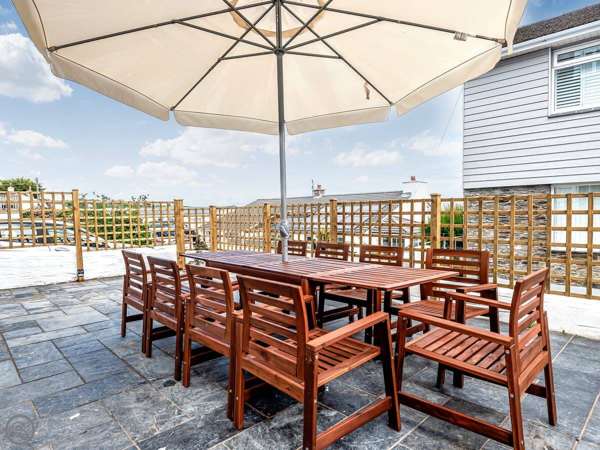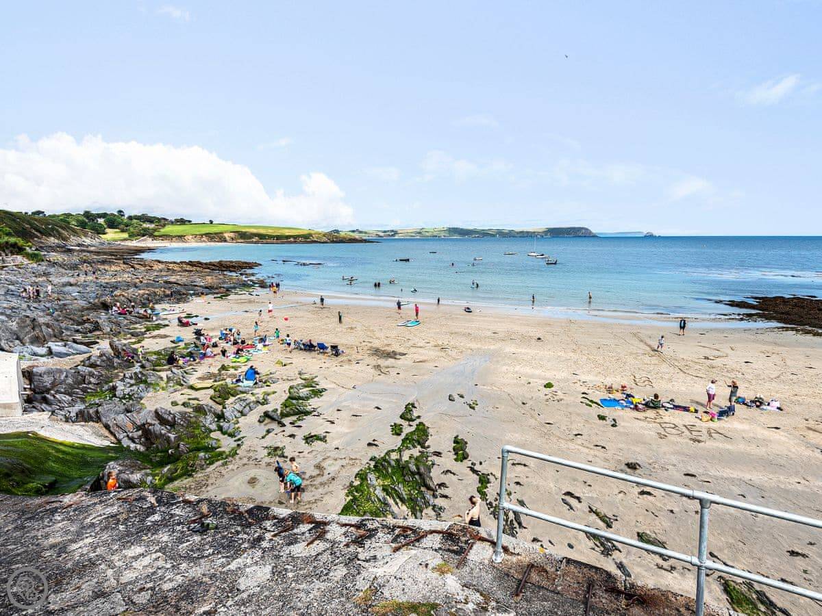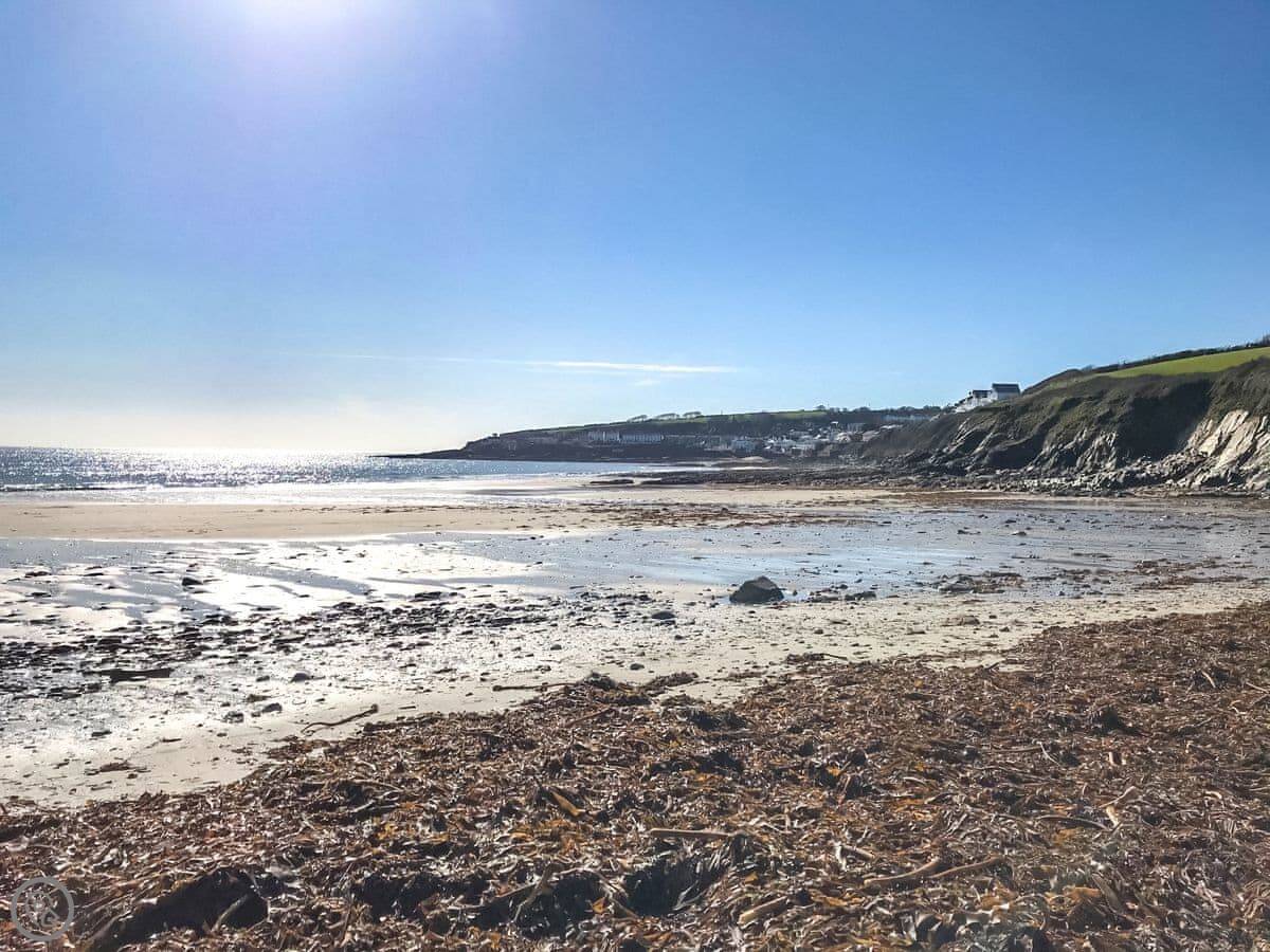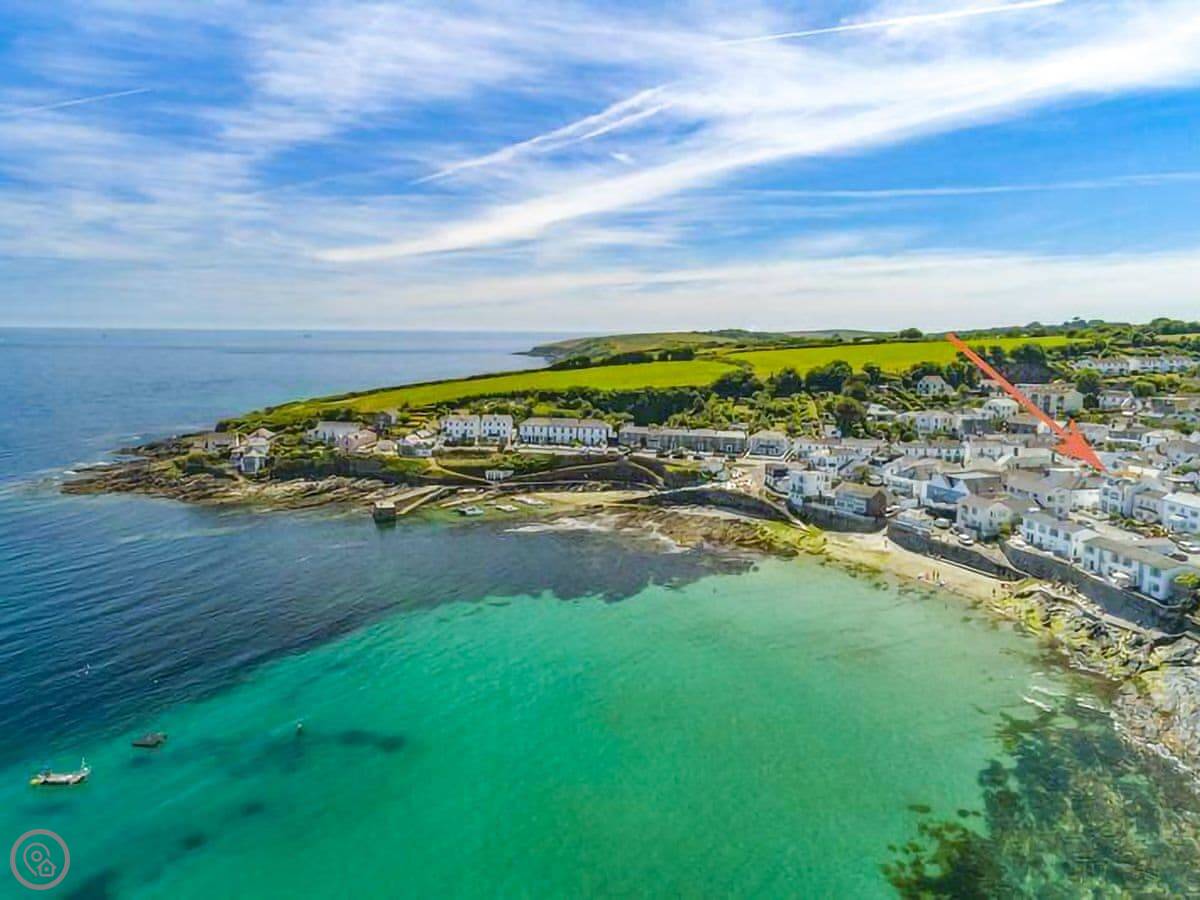 The village has what you need. There's a shop, a butcher, a pub that does food, and cafes. The beach is just over the road. You can walk to Porthcurnick beach along the coast path in about twenty minutes.