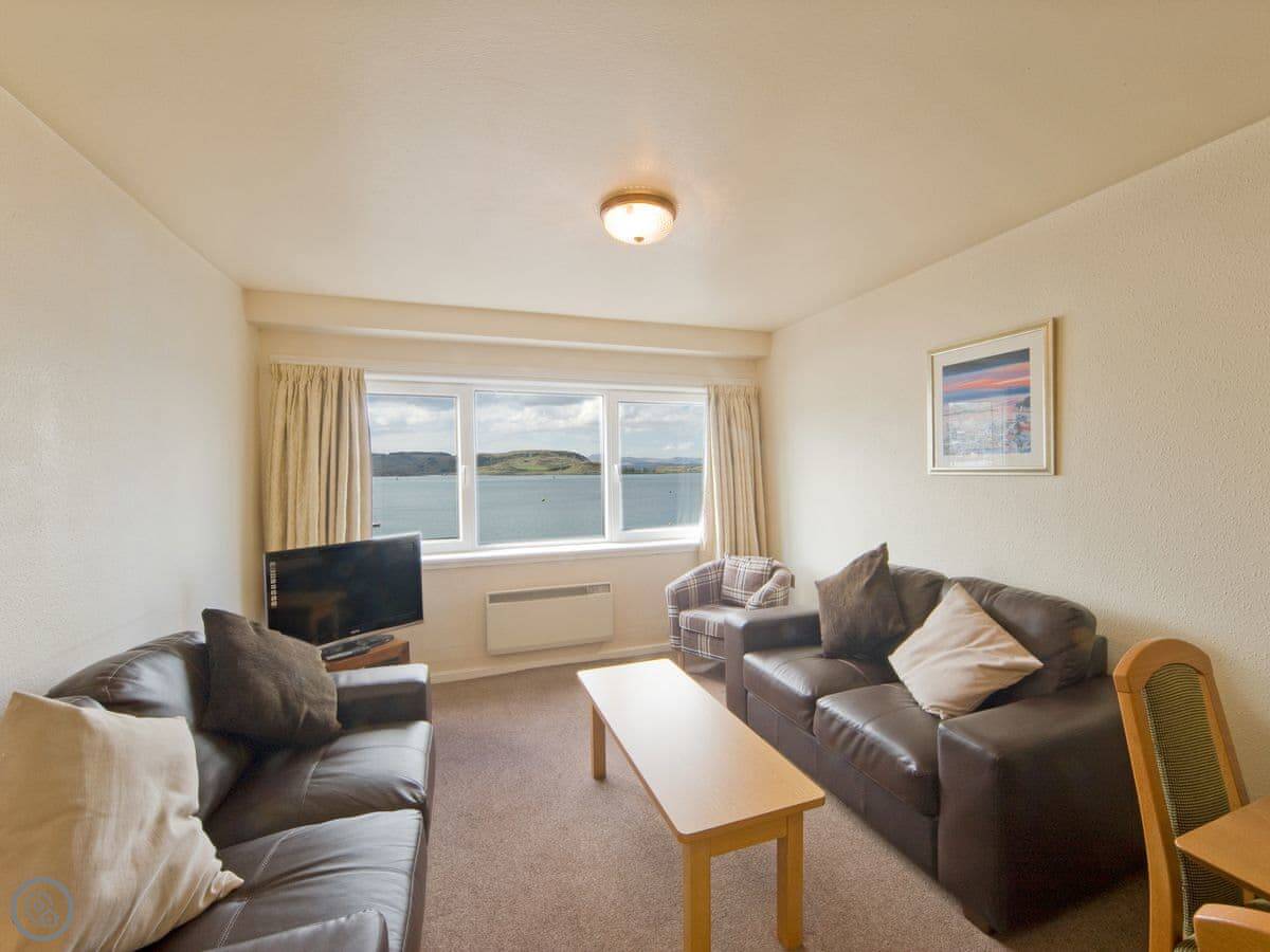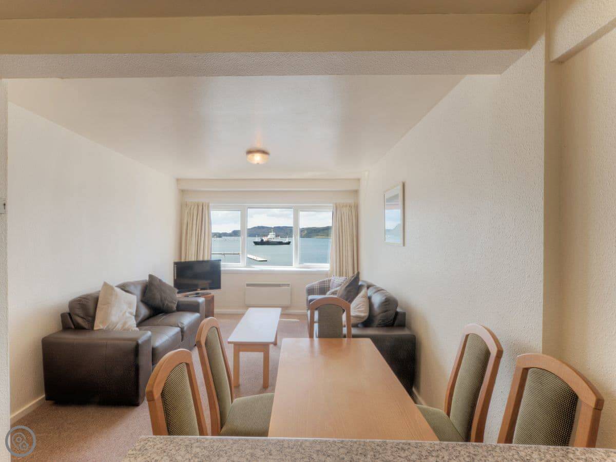 Forming part of Esplanade Court on Oban sea front, Islay 6 offers stunning 4 Star holiday accommodation. Equipped and furnished to a very good standard, it has an open-plan living/dining/kitchen area, two bedrooms and a family bathroom. Situated on the Corran Esplanade, close to Oban town centre and enjoying panoramic views over the harbour and out to the islands of Kerrera, Mull and Lismore from the living room, you’ll get a bird’s eye view of islands, boats, sea and sky. Peaceful and private, yet close to all shopping, entertainments, restaurants, and all sailing, rail, ferry and coach terminals.