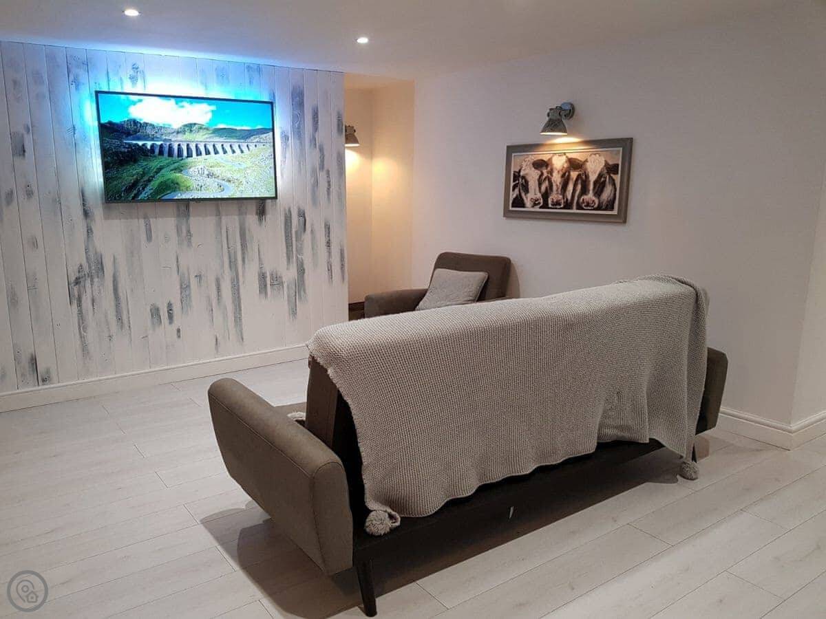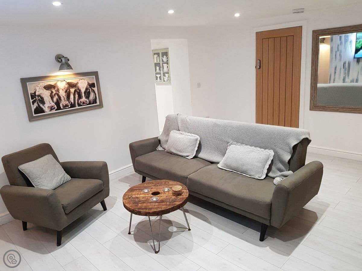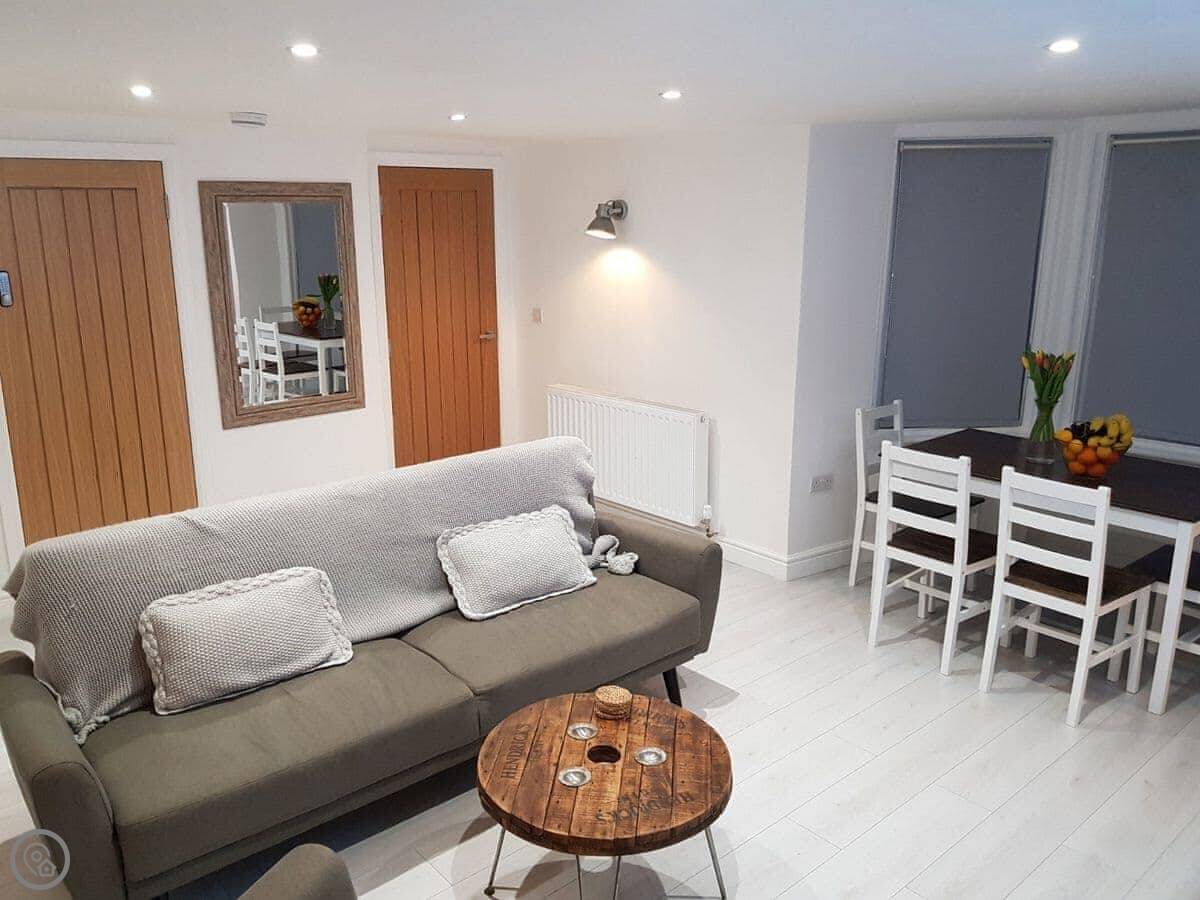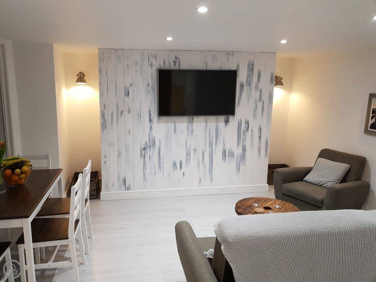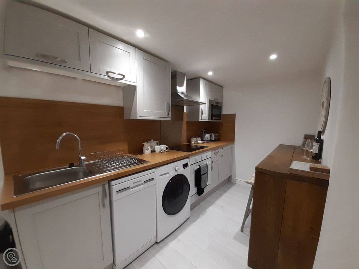 It's got a four star rating, so it's well looked after. The kitchen is a proper full size one. The beams make it feel like a cottage but everything else is modern. There's a TV and WiFi.