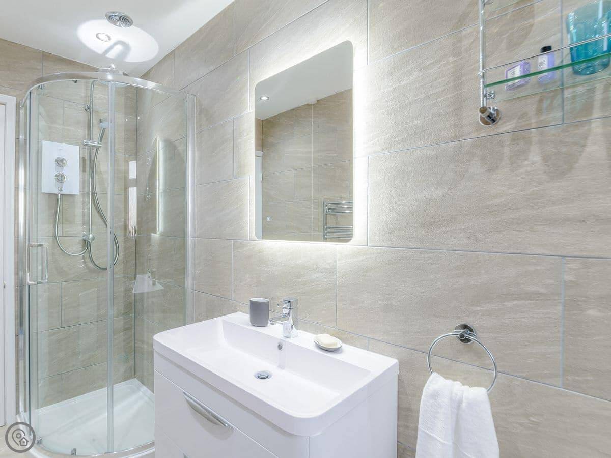 The cottage sleeps four. Two bedrooms, one bathroom upstairs. It's got a 4 Star rating. It's been done up. The bathroom has a rain shower and a separate bath.