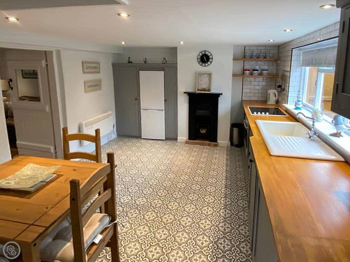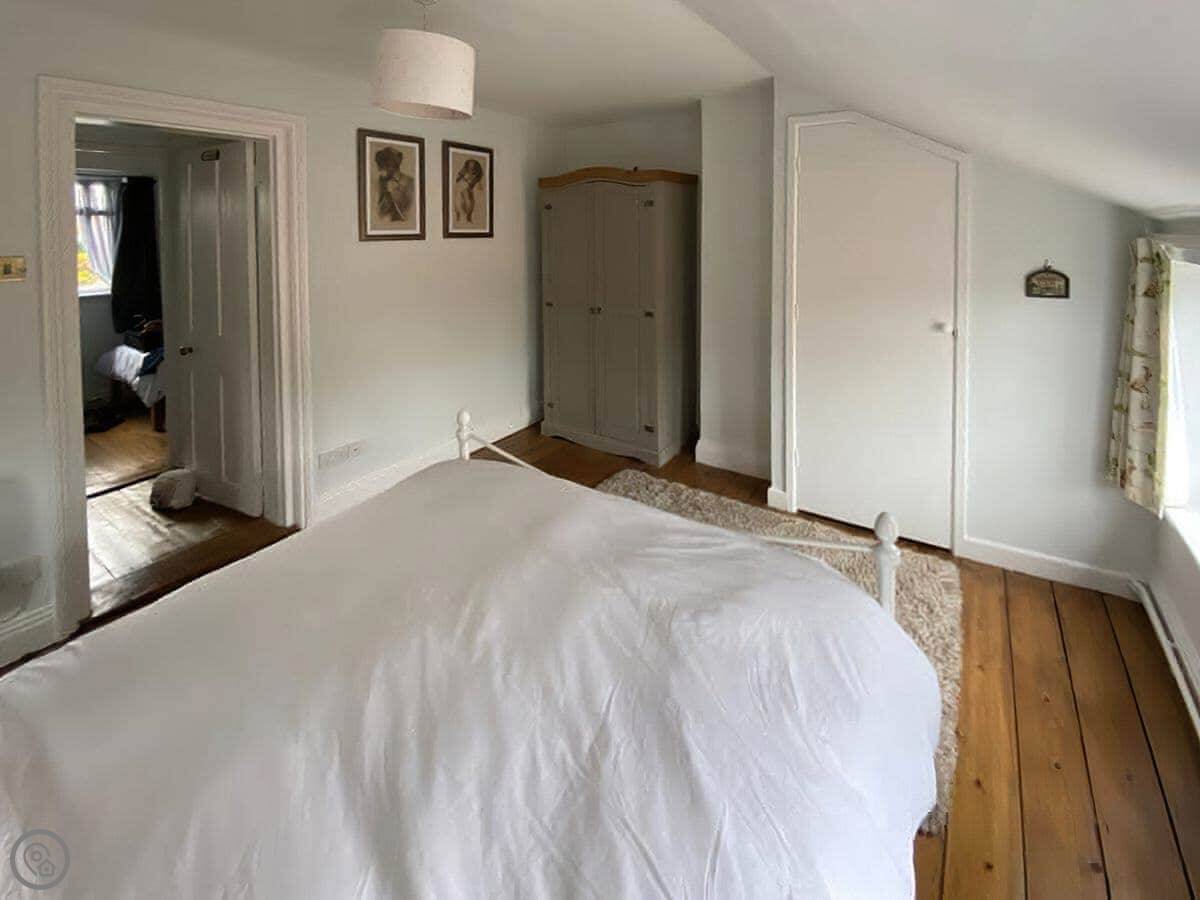 It sleeps four, with two bedrooms and one bathroom. It's got a 4 Star rating. It's comfortable and well looked after. There is a wood burner in the sitting room for cooler evenings. The stairs inside are steep and cottagey, just so you know.