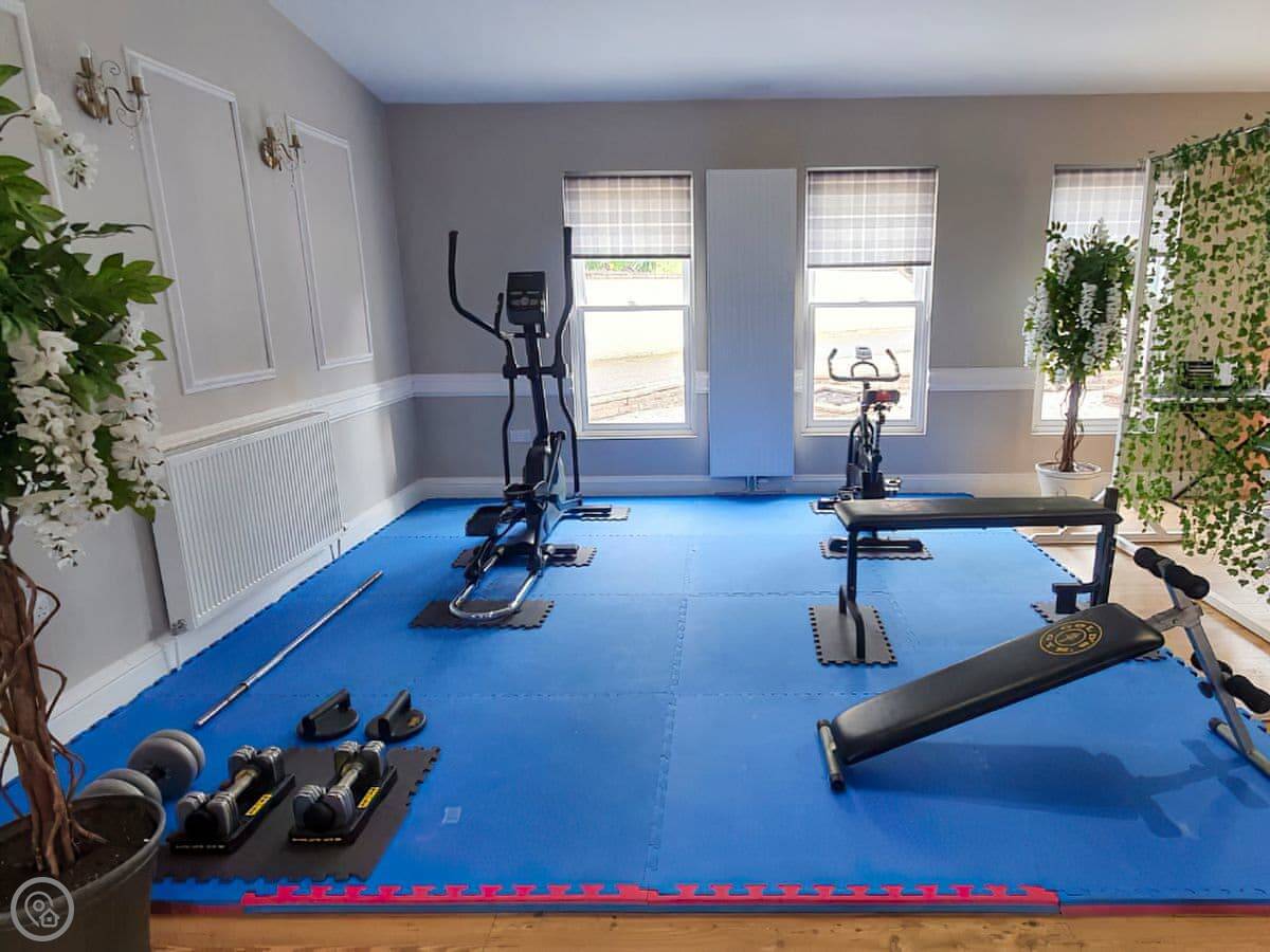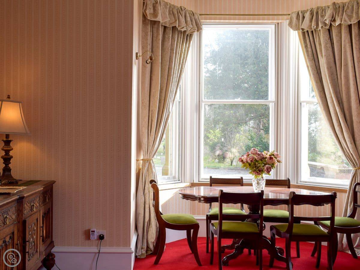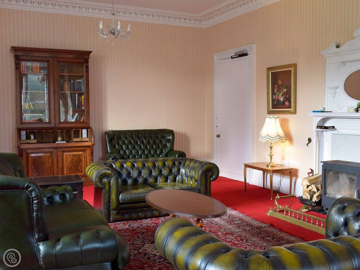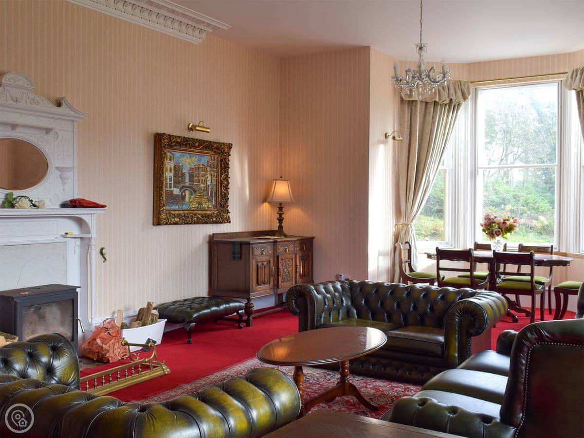 It's got a five-star rating. That means it's very well finished, comfortable, and has everything you'd expect for a high-end stay. There's a big catering kitchen and a banqueting hall. People often book caterers for events here. There's also a games room, plenty of parking, and the garden and patio areas.