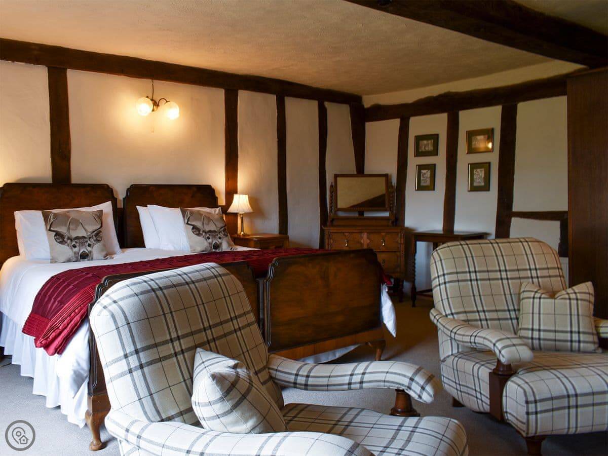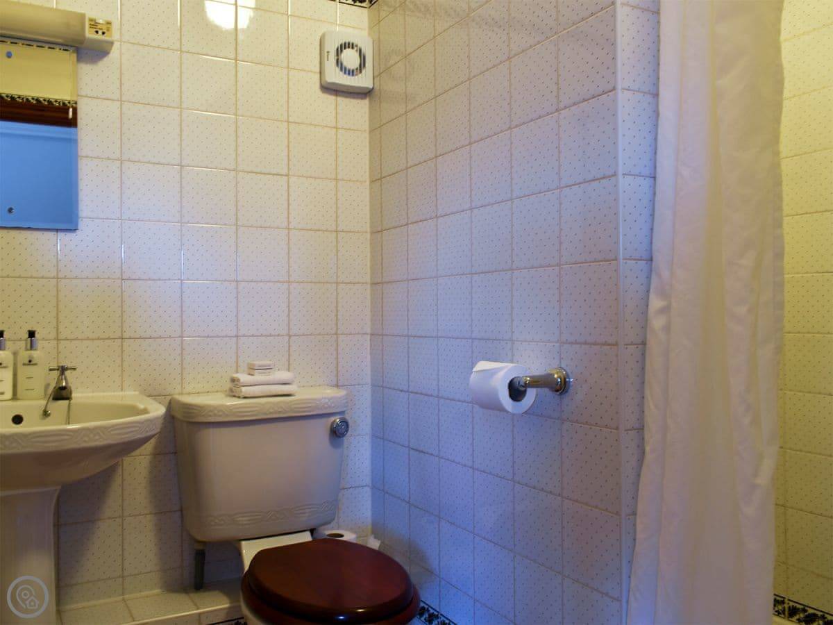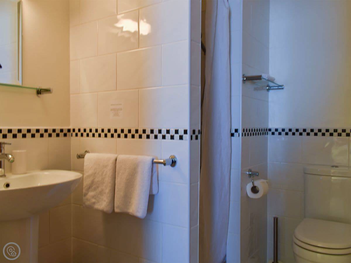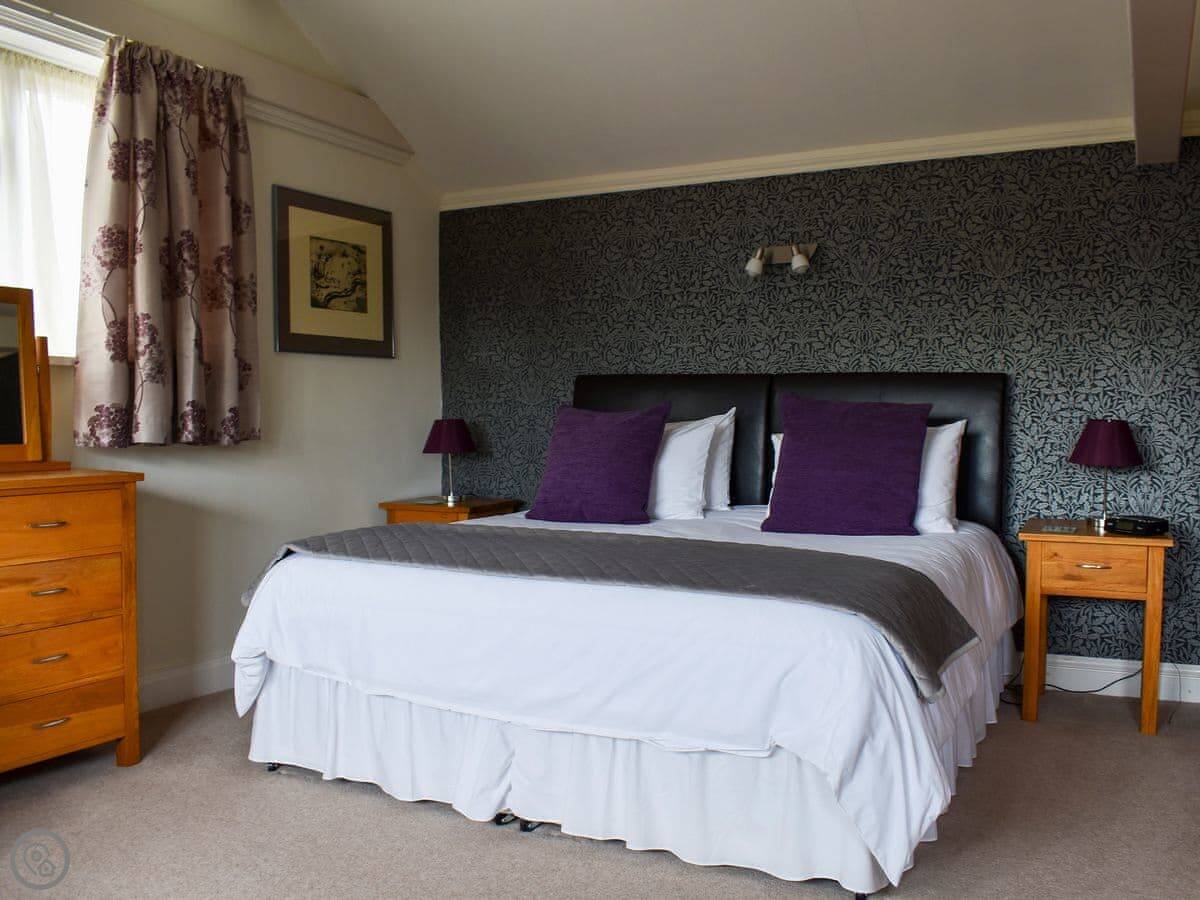 The cottage sleeps eight. Four bedrooms, four bathrooms. It's got a 4 Star rating, which means it's well-finished. It's a listed building, so the ceilings are low in places and the beams are quite exposed. Watch your head.