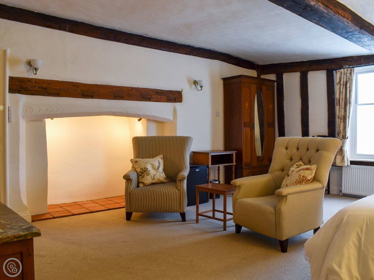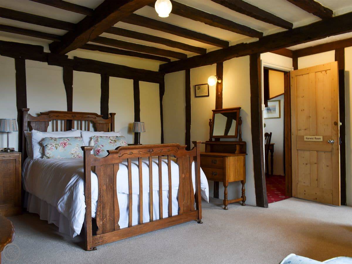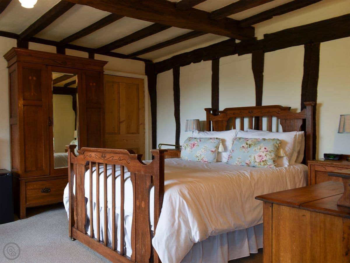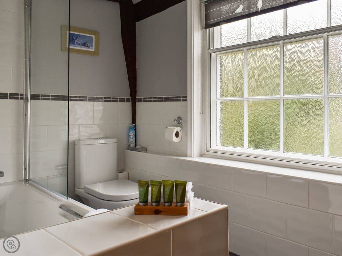 The cottage sleeps eight. Four bedrooms, four bathrooms. It's got a 4 Star rating, which means it's well-finished. It's a listed building, so the ceilings are low in places and the beams are quite exposed. Watch your head.