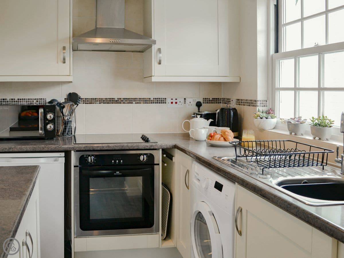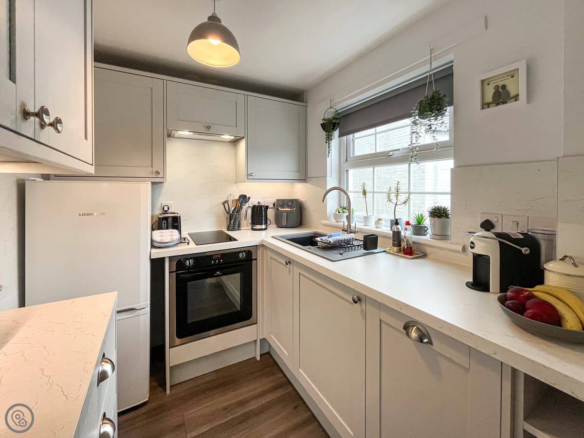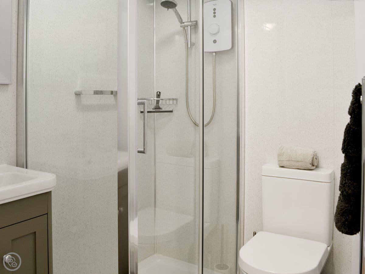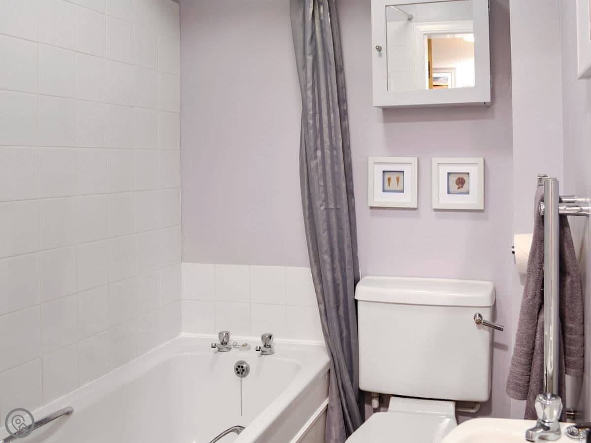 No 7 is a second-floor flat in Gatehouse of Fleet. It sleeps three, in two bedrooms. There's one bathroom with a walk-in shower. The place was all redone in 2020, so everything is modern and works properly.