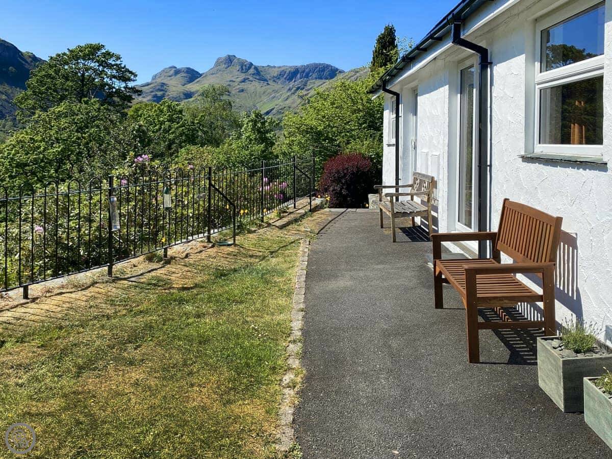 Langdale Cottage is a semi-detached bungalow in Chapel Stile, over in Great Langdale. It sleeps two with two bedrooms. It's got a 3 Star rating, so think clean and comfortable. Everything is on one level once you're in. The views from the front over the valley are very good.