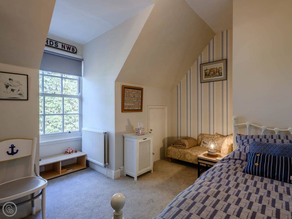 The garden is enclosed. There are two places to sit outside. One of them looks out over the cricket ground. Inside, it's open plan downstairs. We've tried to make it comfortable.