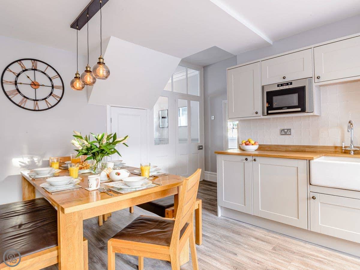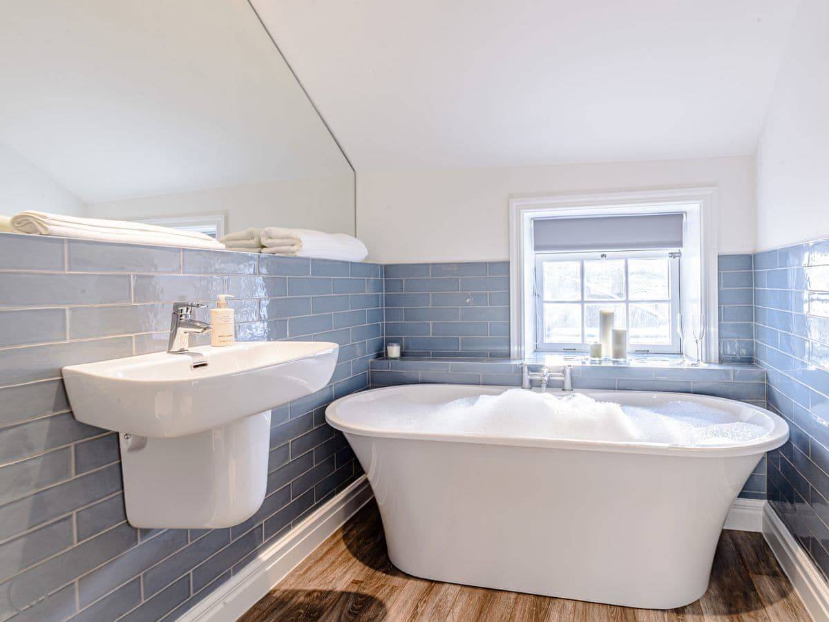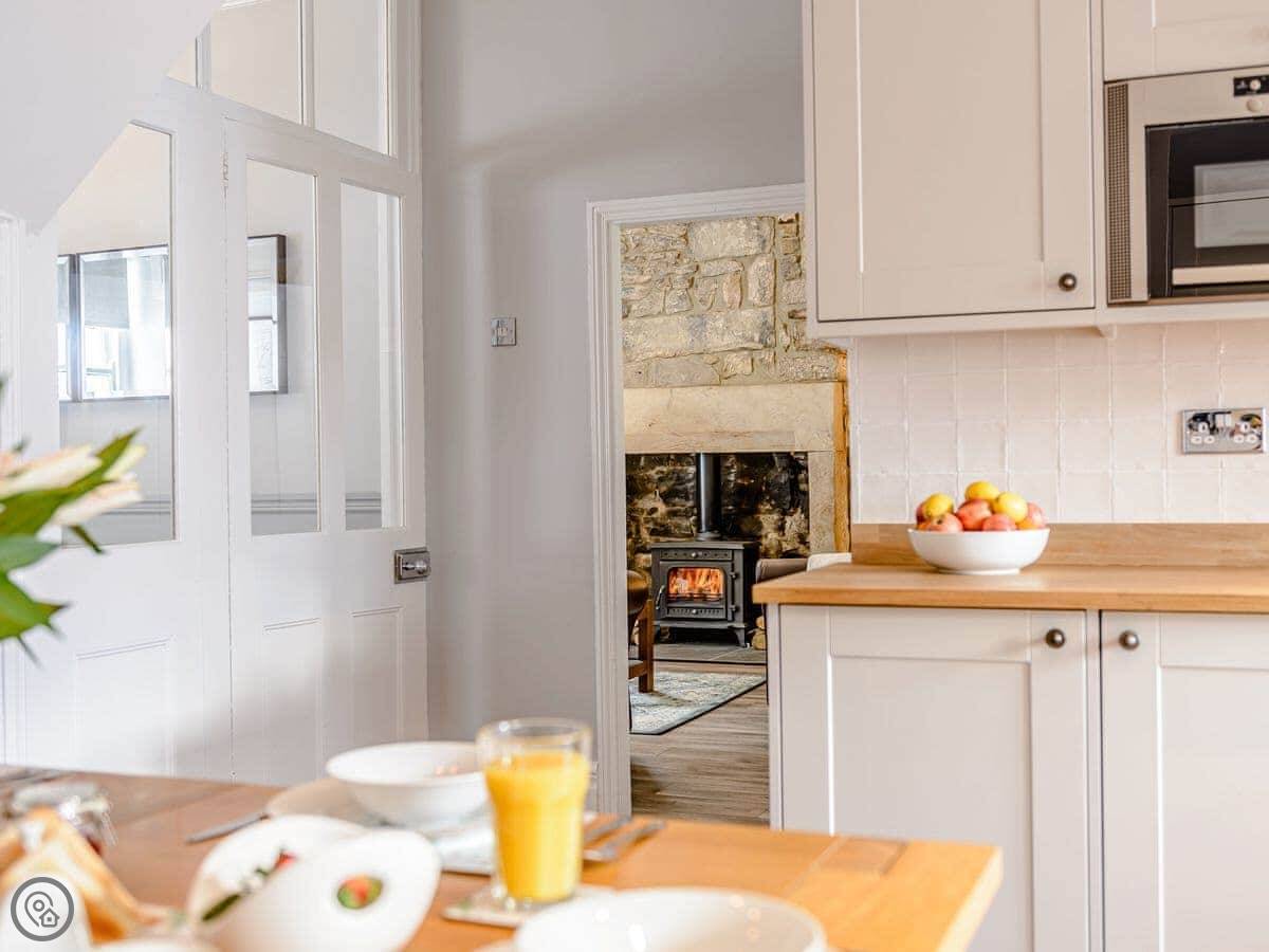Dating back to the 1820s, Well Strand was originally a girl’s school. A lot has changed since then and the cottage is decorated in subtle colours, giving a feeling of calm and relaxation, combining period features with contemporary styling. With feature wood panelling, exposed stone walls, wooden floors, deep window recesses and sash windows. A cosy living room with comfortable furnishings invites you to curl up around the inglenook fireplace and wood burner and enjoy quality time with your family or friends. With a Freesat Smart TV to stream your favourite movies or listen to music, your entertainment is sorted whatever the weather. In the kitchen you will find stylish shaker style units with oak worktops, a Belfast sink and all your modern appliances and kitchen accessories. A large farmhouse table is the perfect place to sit while the designated chef rustles up breakfast or supper. Upstairs are three stylishly furnished bedrooms: A kingsize bedroom; a double bedroom and a twin room, offering great flexibility for sleeping arrangements. With two separate bathrooms, the first with a walk in shower, the second having a beautiful double ended bath from which you can lie back and enjoy a view of the nearby Simonside Hills.