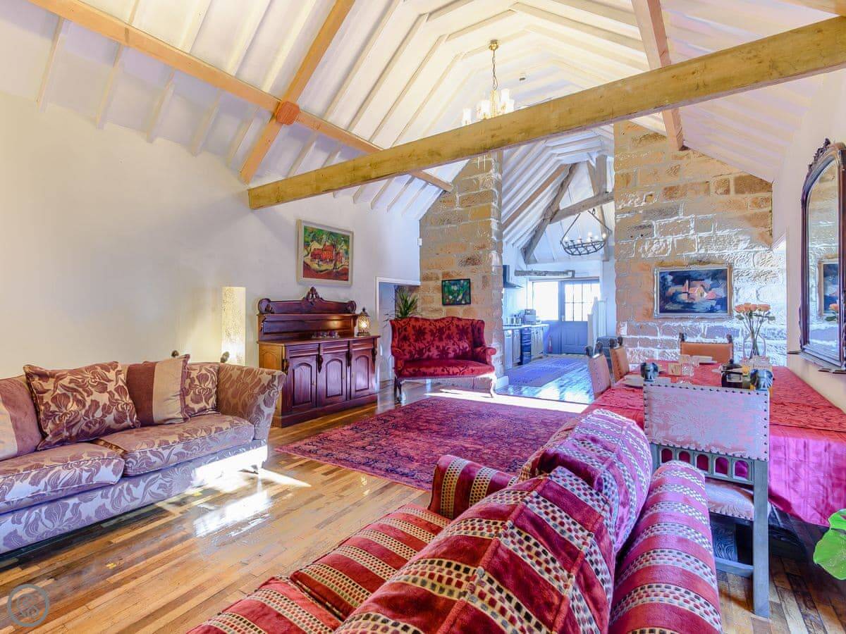 This wonderful cottage is part of Seaton Hall, an ancient manor house with over a thousand years of recorded history. For an authentic stay in somewhere truly unique this is a perfect choice, immerse yourself in a holiday like no other. Stepping inside the cottage named after Lady De Seton, you are greeted by a unique and fabulous open plan living area, with dramatic high beamed ceilings, your eyes are drawn along the full length of the room to the feature fireplace complete with a wood burning stove. The kitchen is bespoke and has been hand crafted, there are exposed stone walls, and you really feel the heritage and character of the original building. On the ground floor you have the master double bedroom with en-suite shower room, and upstairs a twin bedroom under the eaves. On the ground floor, guests will discover that the bathroom is also accessed from the corridor as well as the bedroom, much like a jack and jill bathroom. Perfect for a romantic break away for couples, as well as small families or groups of friends looking for somewhere special. Follow the footsteps across the stone floors where once a Norman Hunting Lodge stood. Discover the links to Robert the Bruce and how the De Seaton family supported this Scottish warrior, as well as how former resident Sir Francis Bigod rebelled against King Henry VIII who famously destroyed the monastery at Whitby Abbey.