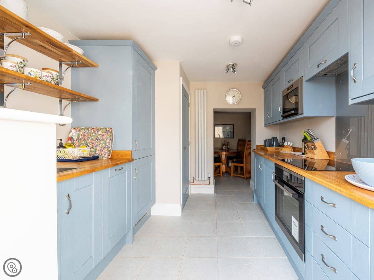 The cottage has a wood burning stove. There’s a washing machine, dishwasher and Wi-Fi. Bedding and towels are included. There’s a stairgate and a cot if you need them.