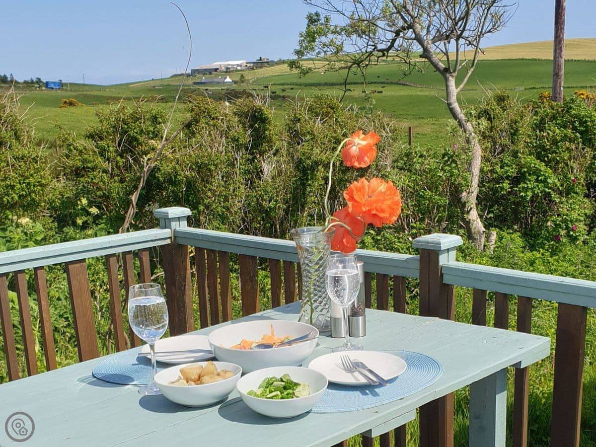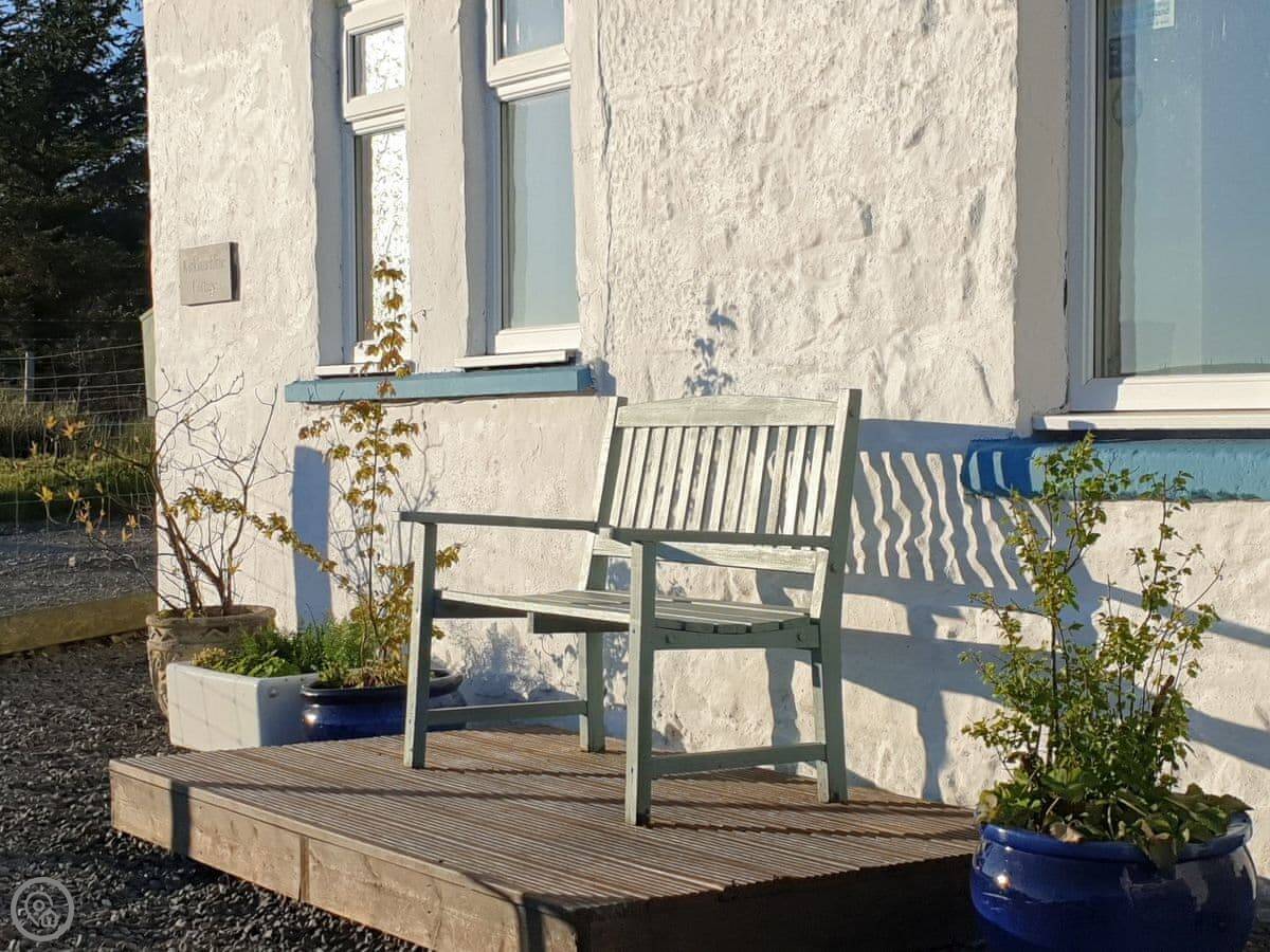 Kirklauchline Cottage is near Cairngarroch, on the Rhins of Galloway. It's a detached old crofter's cottage, so it's stone built and solid. The views are the main thing. You get sea views from the front garden and the decking.
