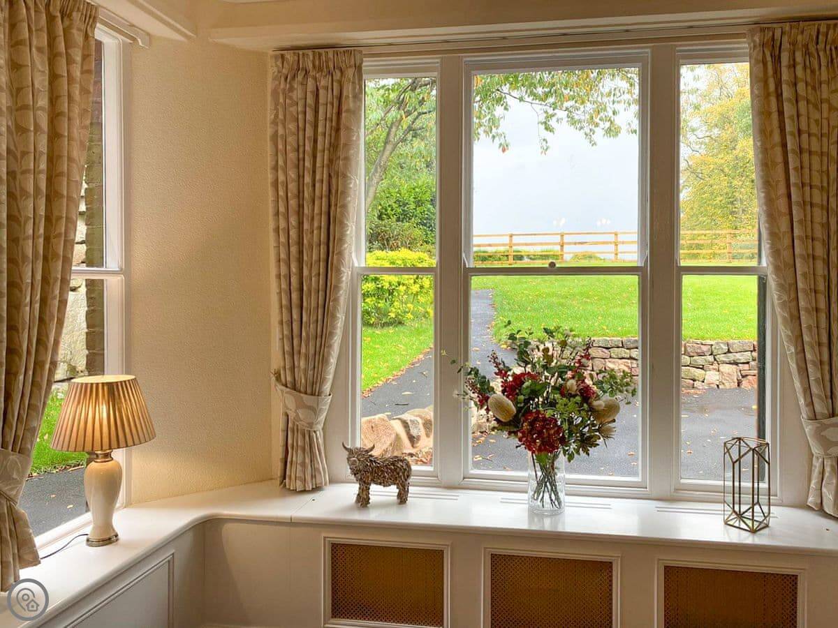 Heath View is in Cheddleton, Staffordshire. It's attached to our farmhouse, so we're next door, but you have your own place. You get the garden and the patio, which looks out over the fields.