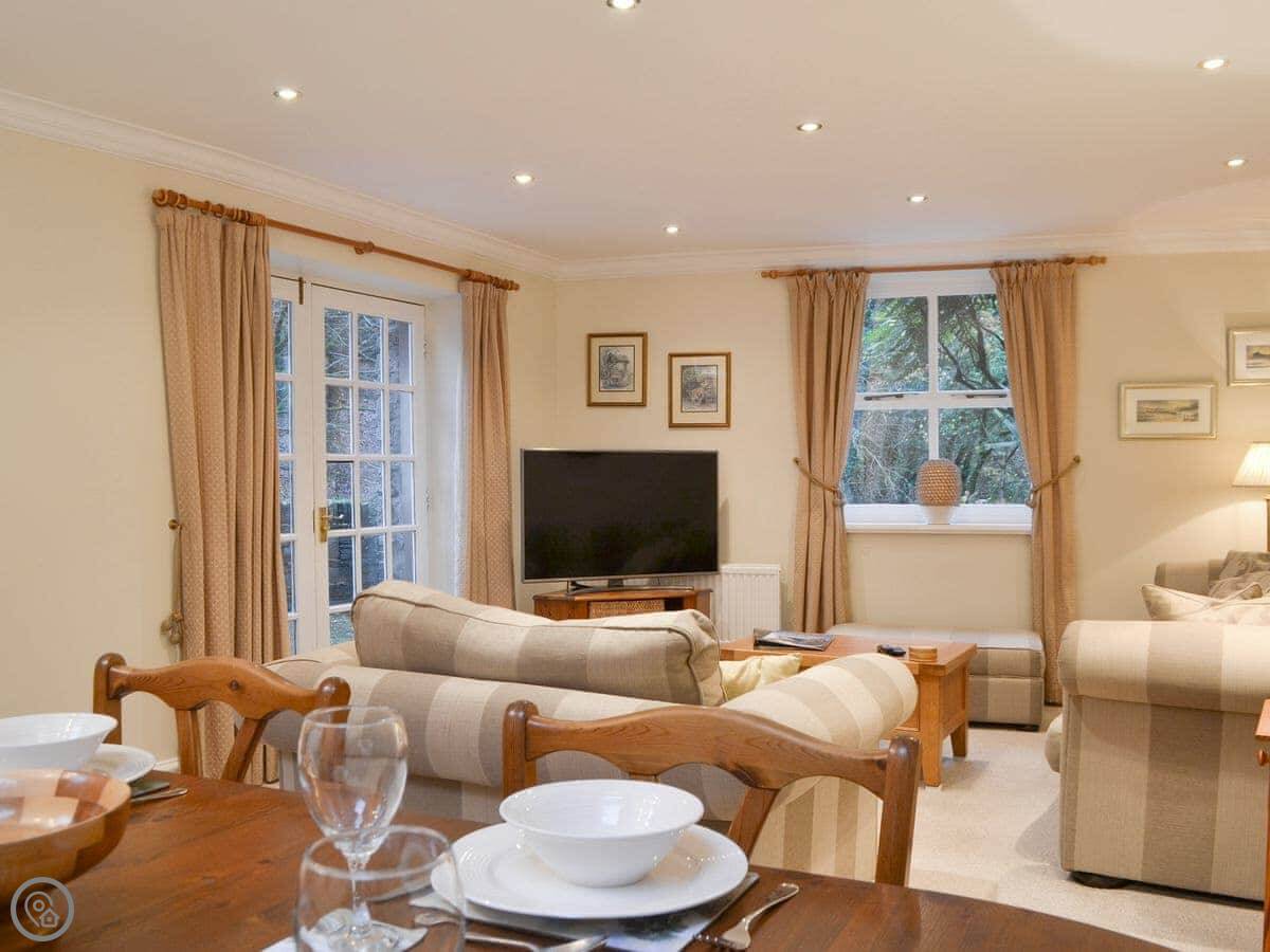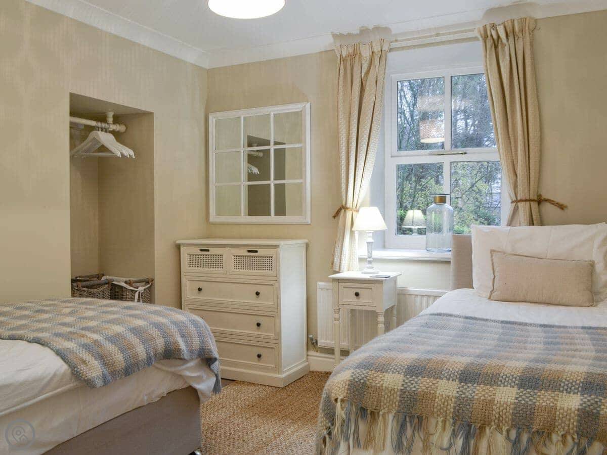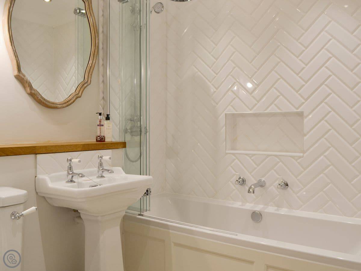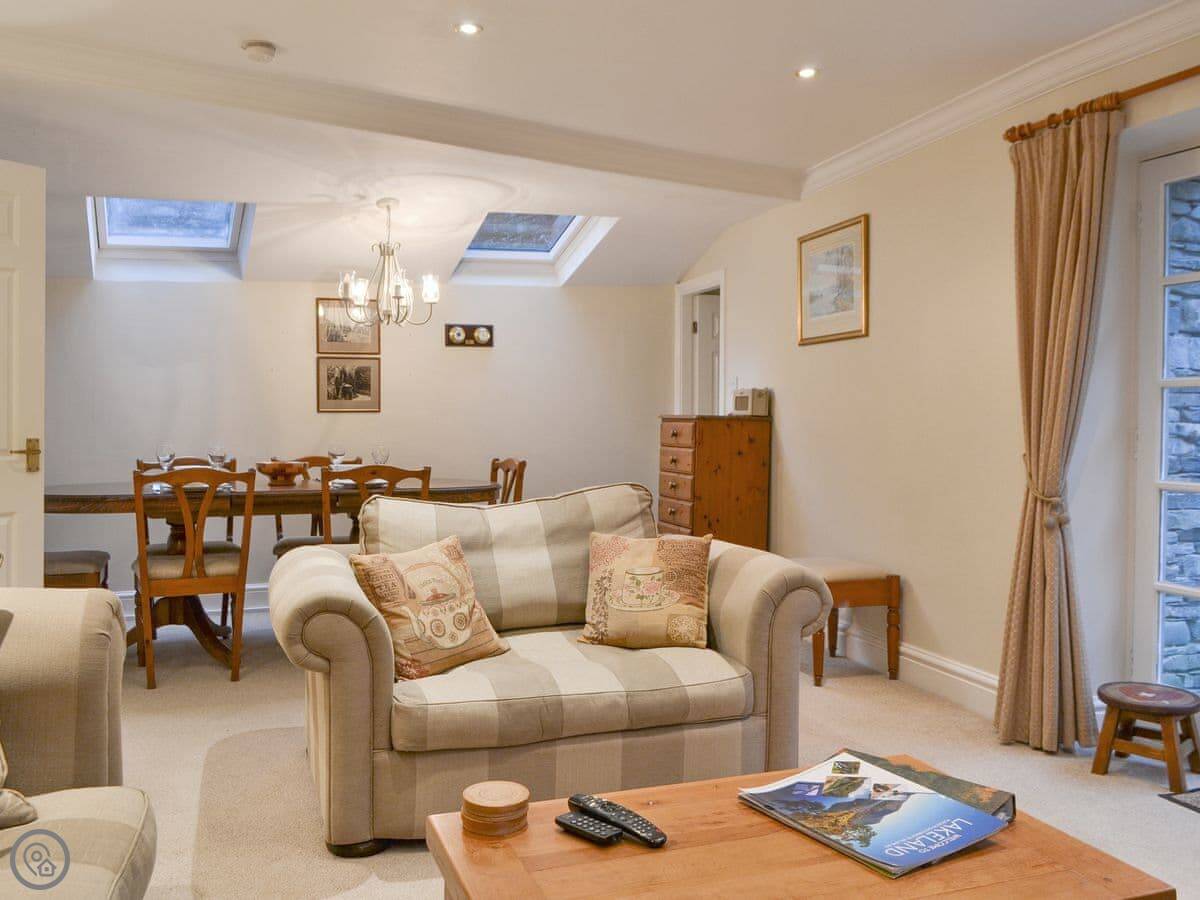 The entrance porch is an ideal place to keep your walking gear, shoes and boots and this leads to a hall connecting the living areas to the bedrooms. This property feels very homely from the moment you arrive. The double bedroom has large windows and a stunning en-suite bathroom with large walk-in shower. The twin bedded room has use of the beautiful family bathroom accessed from the main hall with shower over the bath. The living room is open plan with large dining table and plenty of easy seating leading to a well-equipped kitchen. From the living area you have patio doors leading to a large stone terrace with the sound of the water tumbling down the beck adjacent. It provides a soothing background noise and stunning views of the water and the woodland opposite.