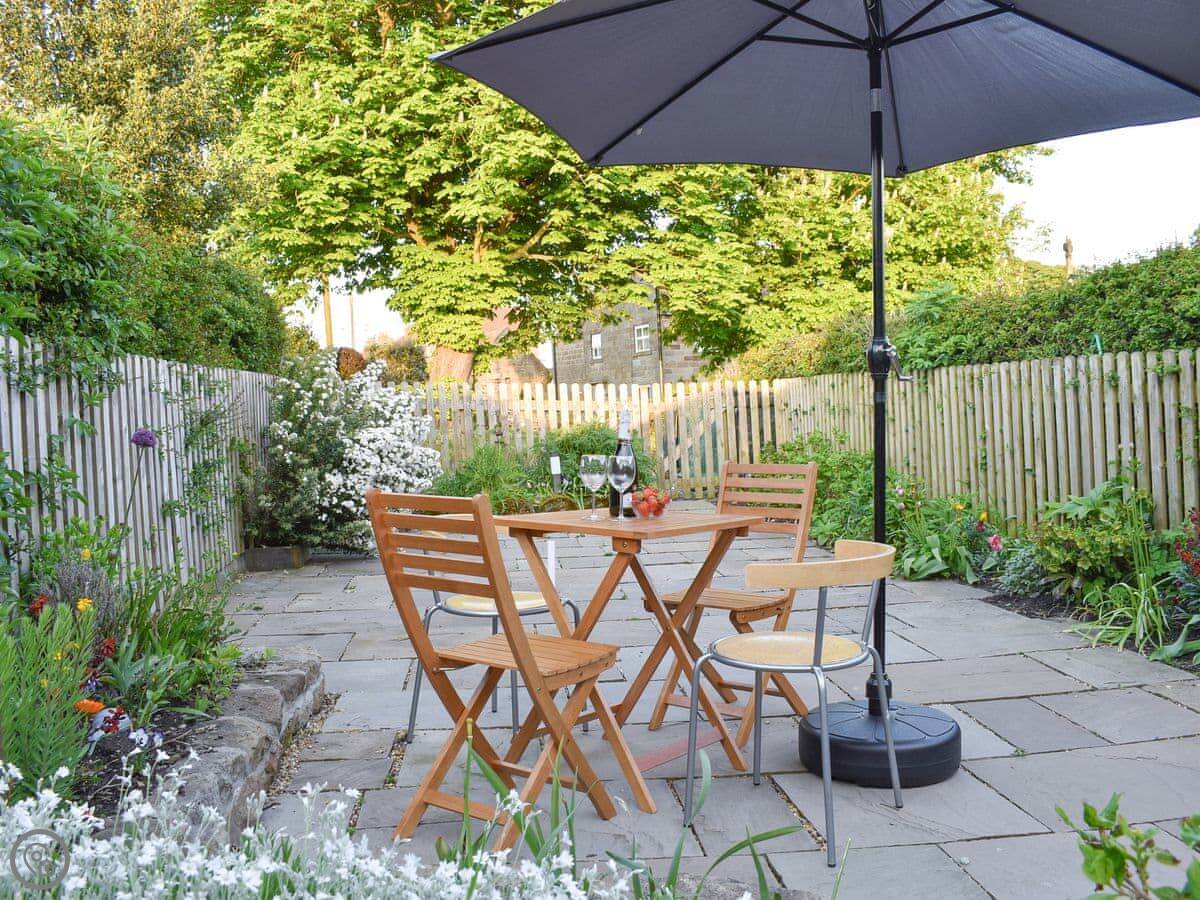 Outside, there’s an enclosed front garden with a patio and seating. You also get access to a rear garden via a side path. Views are over fields.