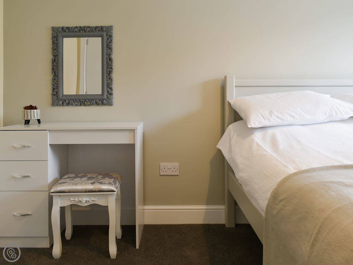 It sleeps four people. Two bedrooms and one bathroom. It's got a 4 Star rating, which means it's comfortable and well looked after. The garden is enclosed, so it's fine for dogs or kids. You can bring up to two pets.
