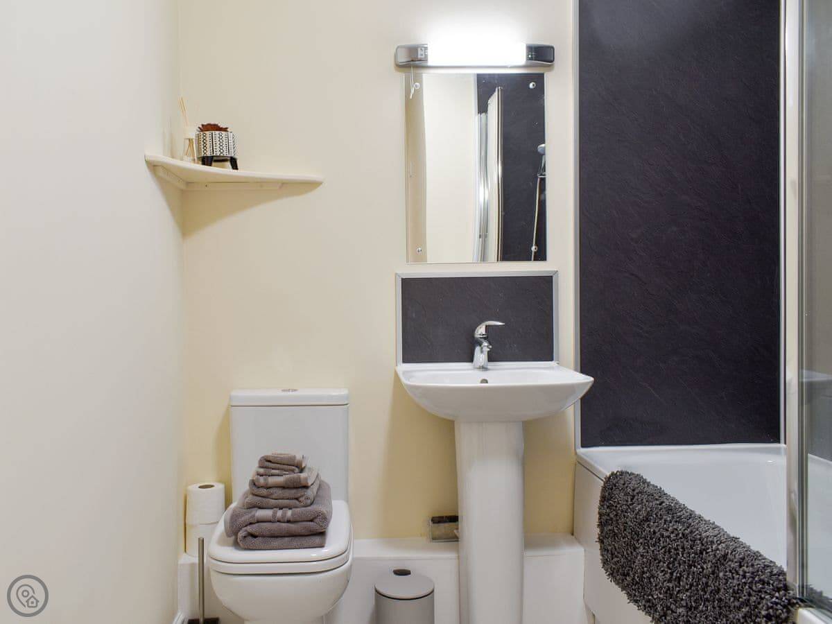 Inside, it's open plan downstairs. There's a TV and WiFi. All the bedding and towels are included. We've also got a cot and a highchair if you need them. Parking is right outside.