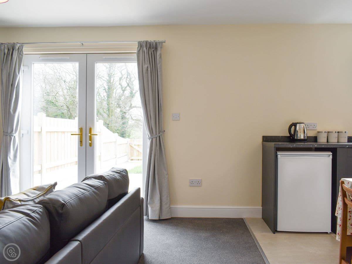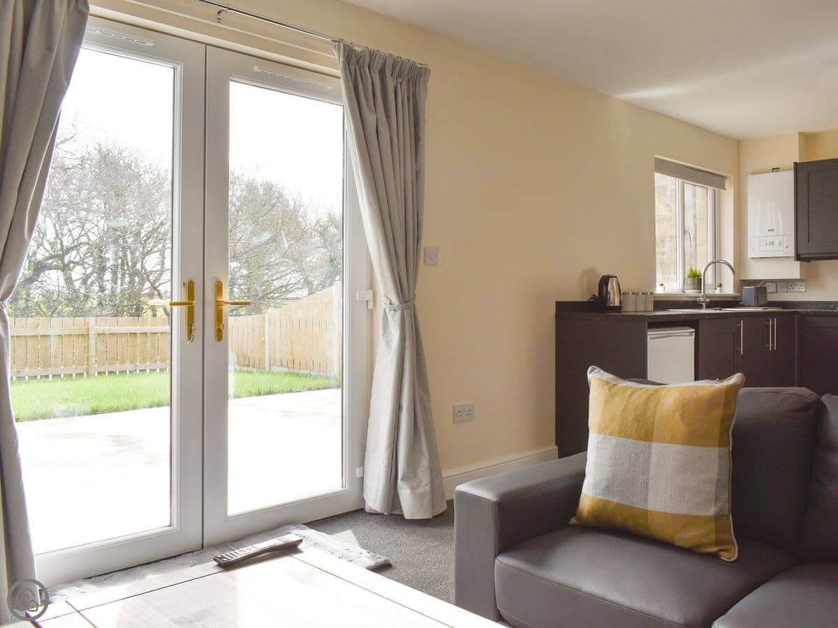 The cottage is on the ground floor, which is open plan. There's an enclosed garden and parking right outside. You get your own little patio area. WiFi and TV are included, plus bedding and towels. We can provide a cot and highchair if you need them. No pets.