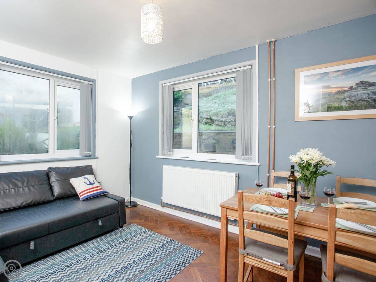 Admirals Apartment has three bedrooms, one with children’s bunk beds. It has a fully fitted kitchen/dining room with seating for 8. Captains Quarters is a gorgeous spacious one bedroom apartment with en-suite and a sofa bed in the living room. Commanders Cabin is a one bedroomed apartment with double bed, double sofa bed and en-suite. Boson Bunks is a one bedroomed property with a double sofa bed in the snug area and a separate shower room.