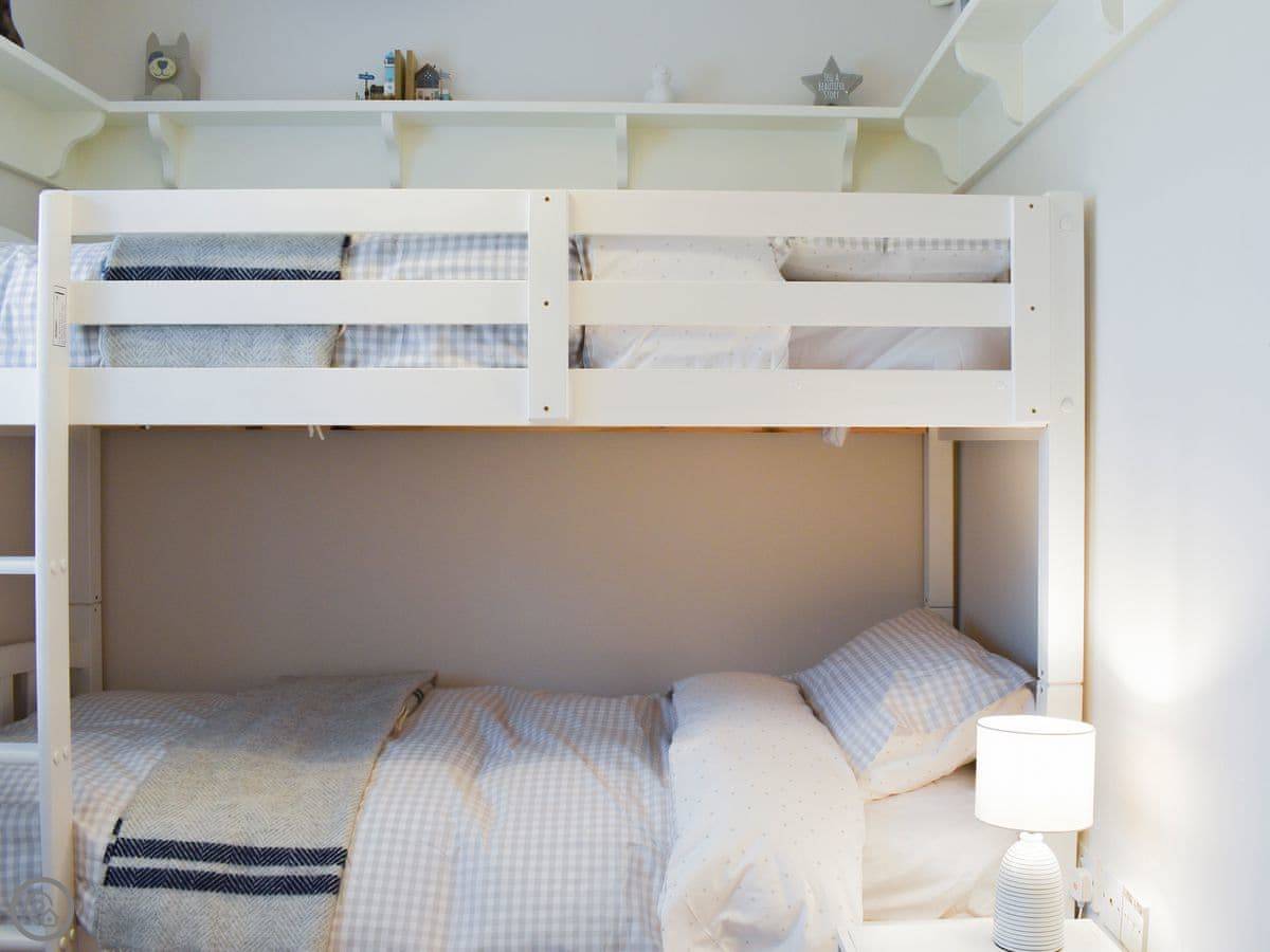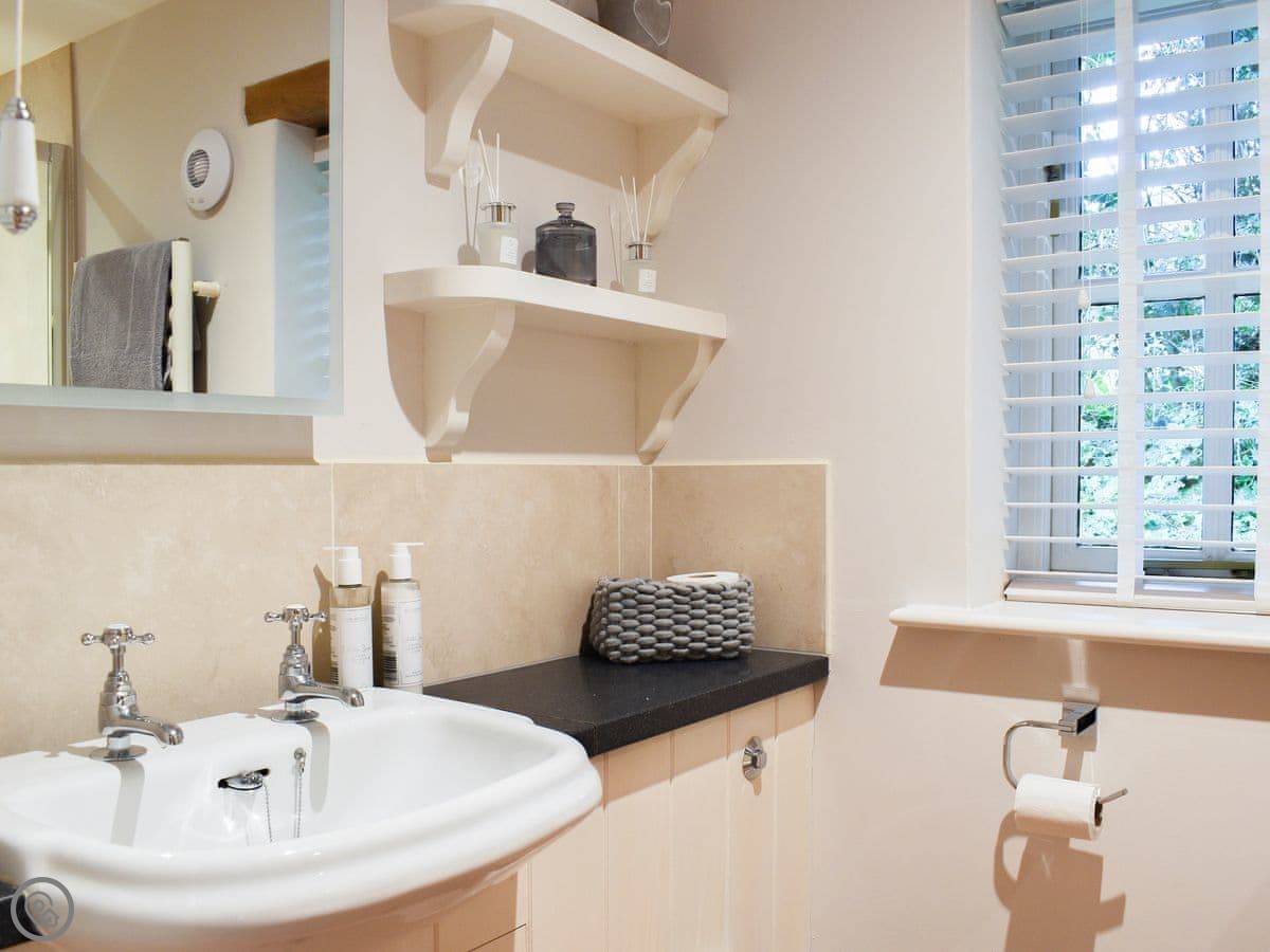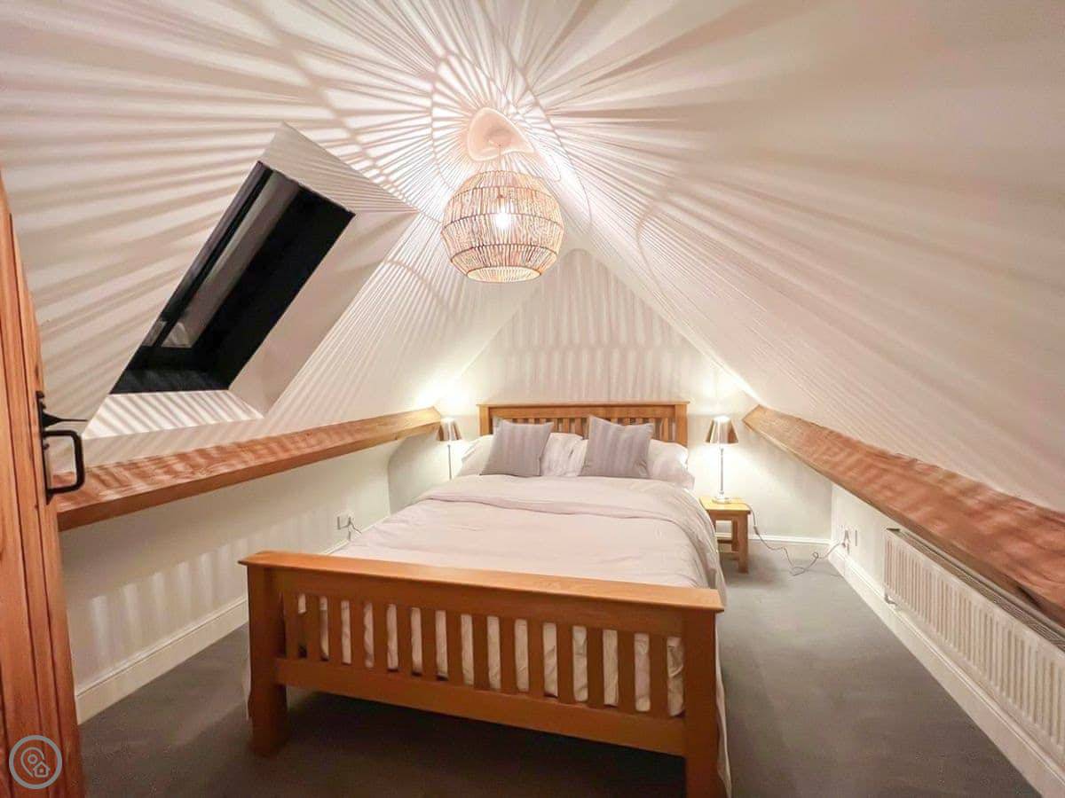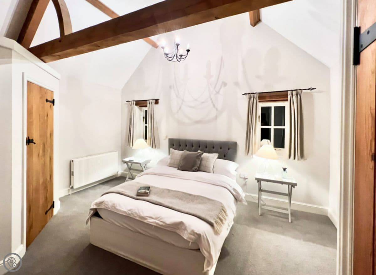 It sleeps six. Three bedrooms, one bathroom. It's got a 4 Star rating, so it's well-equipped and comfortable. It's mainly on one level, which is handy. There's one bedroom upstairs under the eaves, with a vaulted ceiling and oak beams. The stairs up to it are fine.